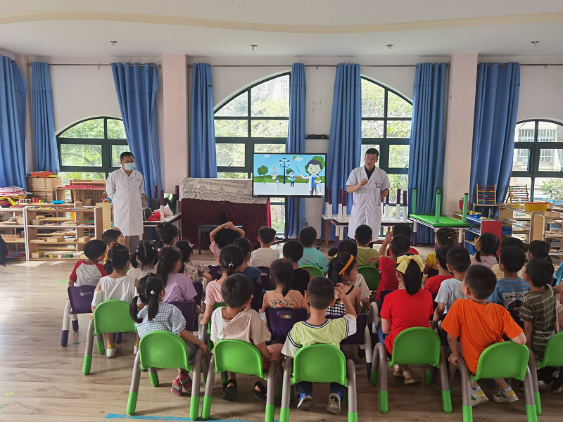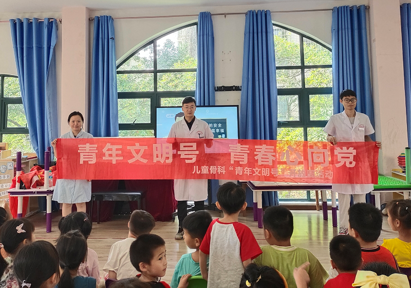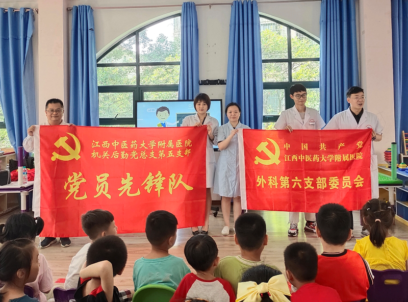 儿童骨科“青年文明号”在机关后勤党总支第五支部及外科党总支第六支部联合组织安排下,于2021年6月25日上午9点,在江西省南昌市西湖区“莱茵半岛幼儿园”给孩子们进行“意外伤害防治知识宣教义诊活动”。