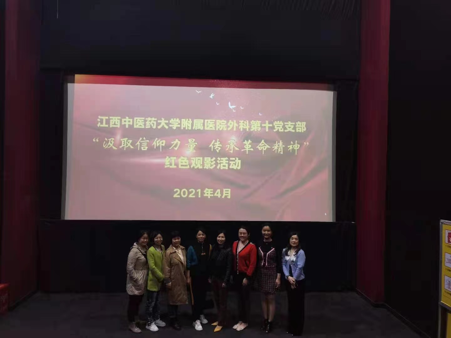 4月25日下午,为庆祝中国共产党成立100周年,推进党史学习教育,用生动形象的党史教材教育引导党员干部职工厚植爱党爱国情怀,传承红色基因,进一步筑牢理想信念,外科第十支部组织开展党史学习教育红色观影活动。