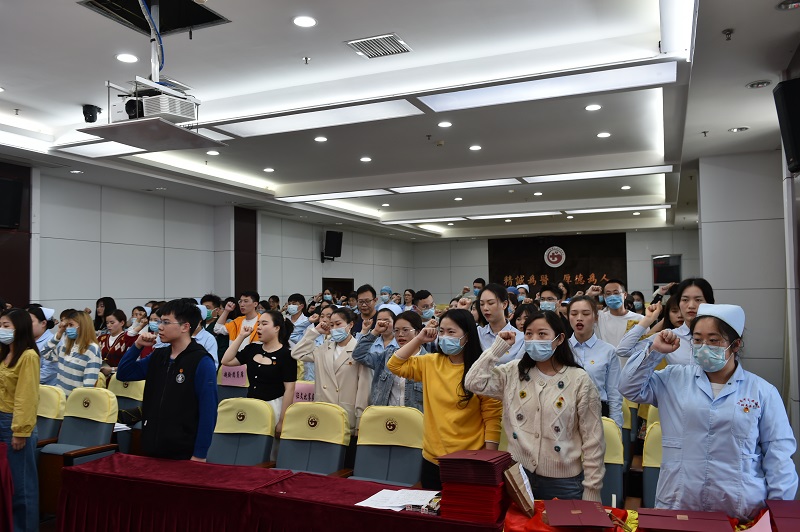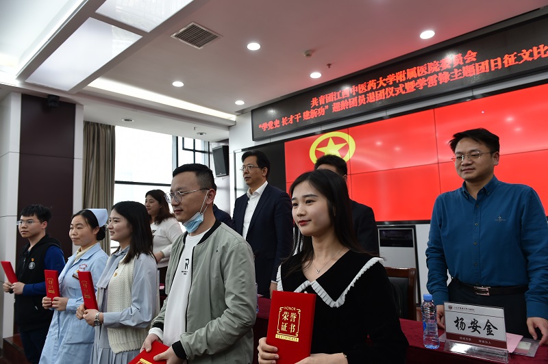在“5.4”青年节来临之际,金瓶梅电影 团委、医务社工部于4月29日下午举办了青年节主题活动——“学党史,长才干,建新功”超龄团员退团仪式暨学雷锋主题团日征文比赛表彰会。党委书记刘中勇,临床医学院党委副书记、副院长刘海、党委副书记翁剑锋,党办、院办主任杨安金,团委书记邓紫微出席并参加本次活动。