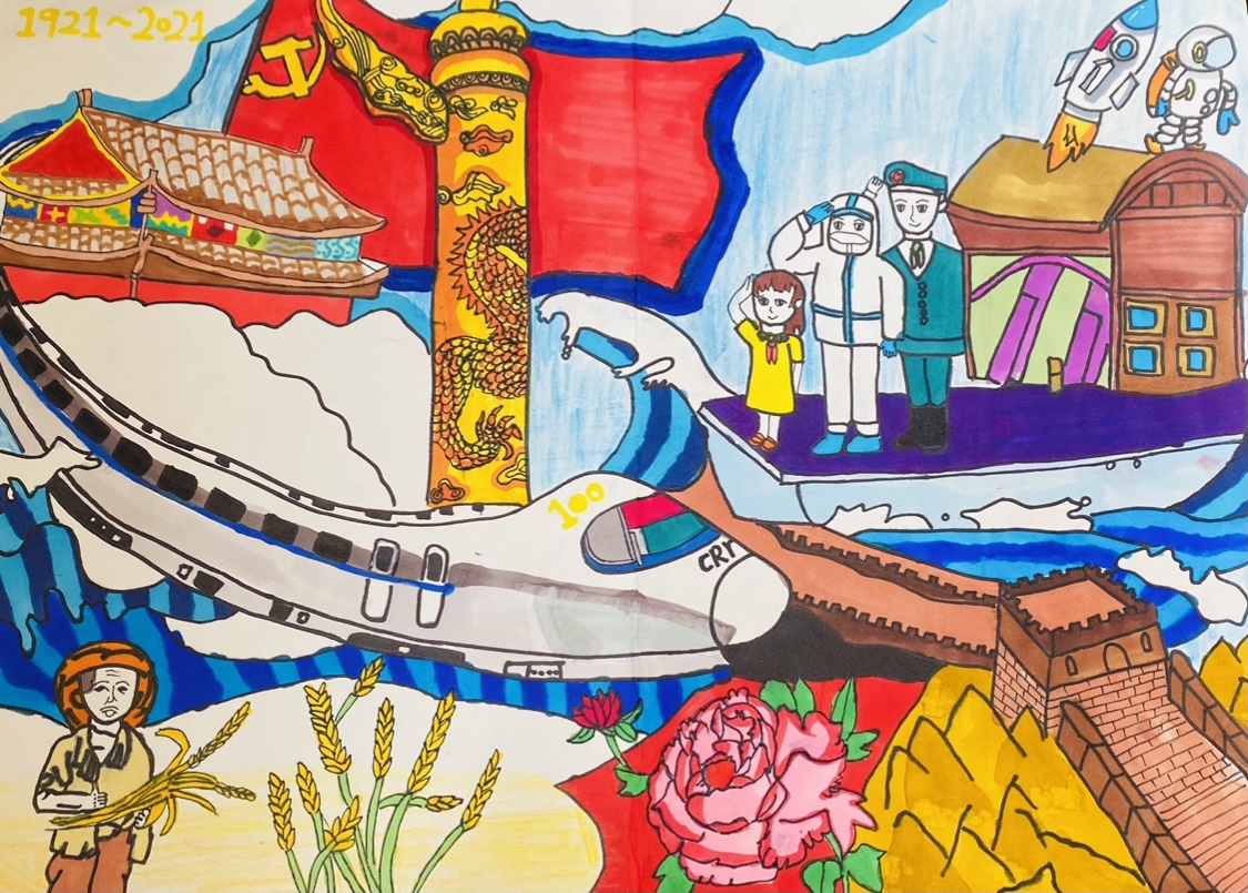活动期间共征集了47幅由4-14岁小朋友绘制的主题作品,职工子女和爸爸妈妈一起关注党史,用眼睛观察祖国的美,用巧手描绘党的历程,用创作展现中国共产党领导下的中华儿女新面貌。一幅幅作品展现了孩子们心向党、跟党走的感情信念,树立远大理想、热爱伟大祖国、担当时代责任,努力成为德智体美劳全面发展的社会主义建设者和接班人的决心!接下请大家欣赏本次活动的十佳作品(次序按年龄排名):