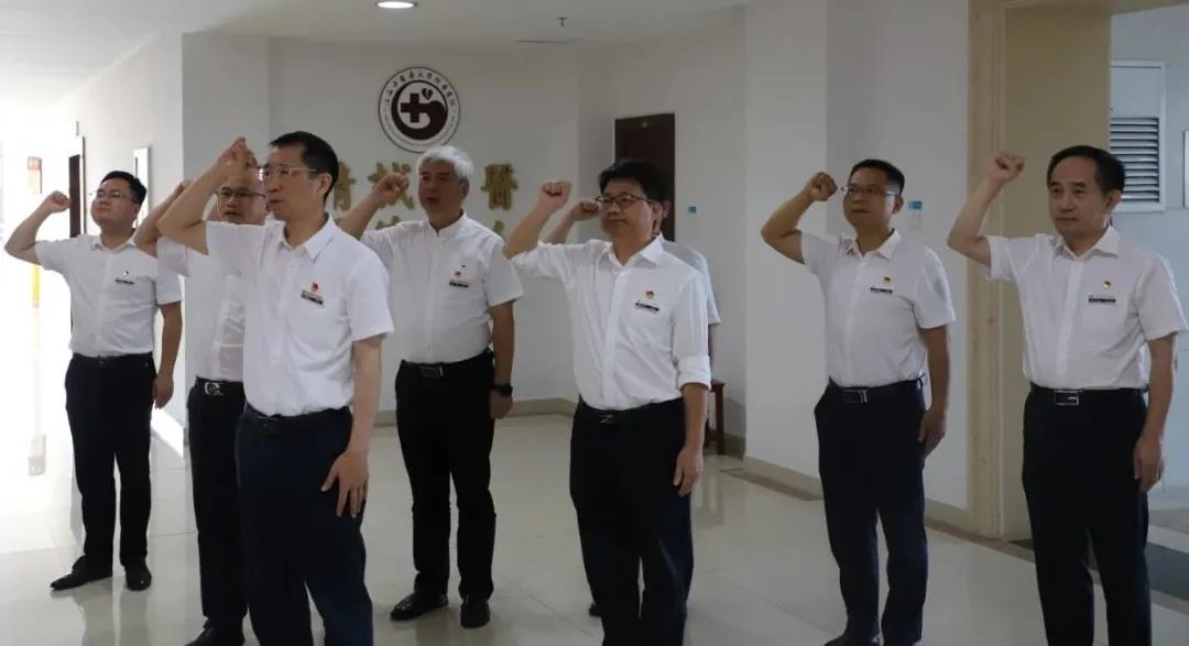 在党的百年华诞到来之际,江西中医药大学党委委员、副校长、附属金瓶梅电影 党委书记章德林带领附属金瓶梅电影 班子成员及党员代表重温入党誓词。