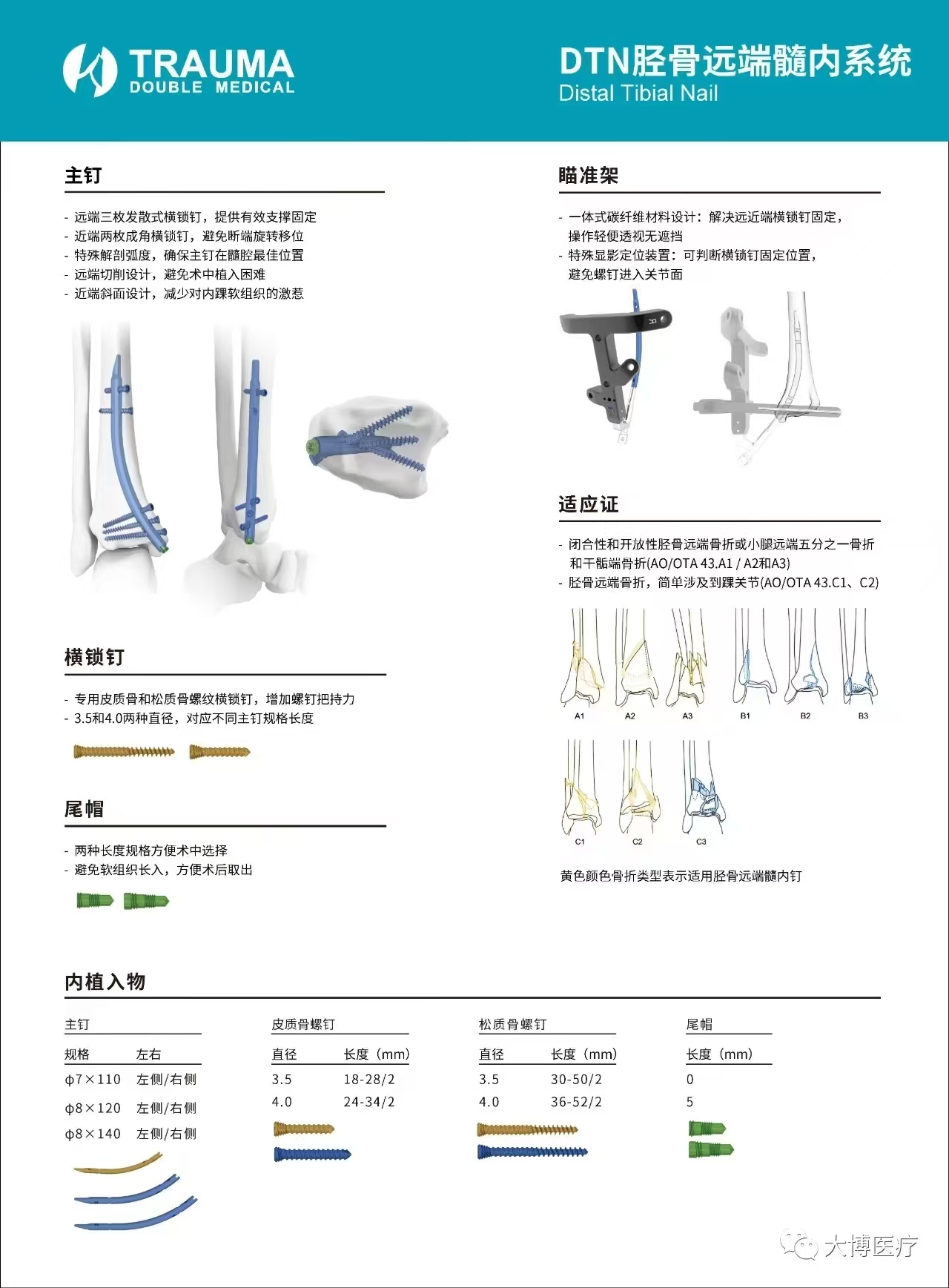 胫骨远端髓内钉作为一种新型的胫骨带锁髓内钉内固定系统,是髓内钉系统的新成员,可以弥补顺行髓内钉的不足,其主要适应症为闭合性和开放性胫骨远端骨折或小腿远端五分之一骨折和干骺端骨折(AO/OTA43.A1/A2和A3)。或者是胫骨远端骨折,简单涉及到踝关节(AO/OTA43.C1、C2)。胫骨远端逆行髓内钉操作简单,切口更小,对骨质造成的创伤小,降低了对软组织的激惹,可以缩短住院时间及康复时间,符合快速康复ERAS理念。该技术在江西的首次应用为创伤骨科在骨科微创治疗上再添利器。