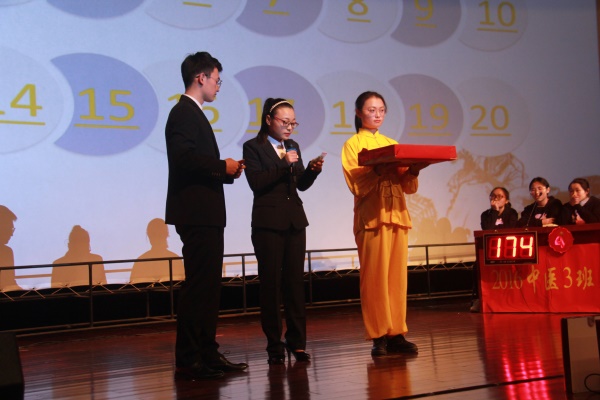 经过初赛与复赛的层层筛选,共有六支队伍挺入决赛,每支队伍由三名选手组成。竞赛内容以方剂学为主,辅以部分中药学、中医诊断学知识,从辨证论治、临床诊断等各个方向考查了选手们的中医学综合知识。期间,选手们以经典的历史典故、新潮的网络用语、独特的肢体语言穿插其中,凭借默契的配合与精彩的答题赢得现场掌声阵阵。最终,2016级中西医临床3班获一等奖,2016级中医2班获二等奖,2016级中医5班获三等奖。