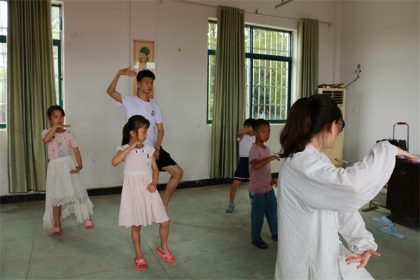 关爱留守儿童,传播传统文化。“野马分鬃、白鹤亮翅、手挥琵琶,小朋友们,姿势一定要标准哦”,临床医学院社会实践队队员们将临床特色的太极文化带给了钱圩村的留守儿童们,激发孩子们学习中华传统保健功法的兴趣和爱好,传承和弘扬祖国传统文化瑰宝。此外,服务队还给钱圩村小学赠送了粉笔、文具、书本等物品,开展了中医药文化健康知识宣讲、眼保健操穴位教学等活动,将中医药文化的种子扎根在了留守儿童的心中。