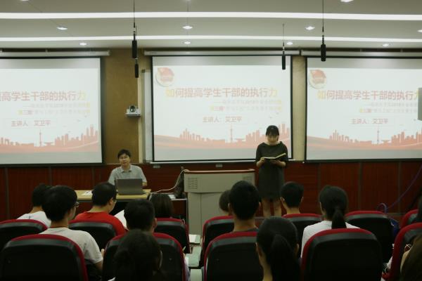 艾卫平老师围绕“如何提高学生干部的执行力”,向同学们详细讲解了学生干部执行力的概念、其中存在的问题与原因、提升学生干部的执行力的途径以及意义。此外,艾卫平老师还结合自身曾担任学生干部的成长经历,向在场的学生干部提出切合实际的问题与建议。授课内容生动有趣,现场气氛轻快活跃,同学们认真记录,受益匪浅。