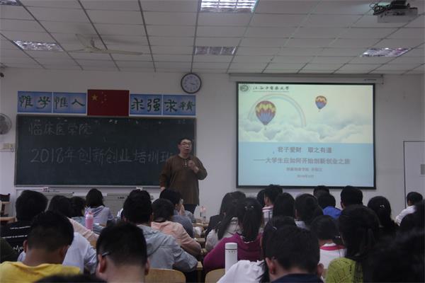 江中新闻网讯 4月13日,由临床医学院团委学生会主办的创新创业培训班在立德楼1305教室开展了第二次课程,此次课程邀请到了学校创新创业学院乔信江老师担任主讲。