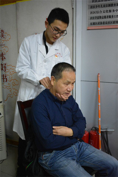 天空下着蒙蒙细雨,但是浇不灭学生党员们参与志愿活动的高昂热情,大家分工明确,井然有序地为马家池社区的居民开展多项服务。在活动现场,学生党员们各展所长,用所学的专业知识来帮助居民们解决健康难题,或为居民们进行推拿按摩,缓解疲劳疼痛;或进行艾灸治疗,驱散风雨寒湿。学生党员们尽心尽力地为居民们解答着健康疑难问题,并提供测量血压、保健咨询、生活护理指导等服务。现场的画面很是温馨,学生党员与社区居民们相处融洽相谈甚欢,面对学生党员们的热心服务,居民们纷纷表示十分感动。