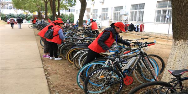 临床医学院的志愿者们利用午间休息和课前时间在宿舍楼及教学楼门前有序地开展规范自行车摆放的活动。志愿者们积极引导骑自行车的同学停放到有序的位置,并将已停放好的自行车和电动车摆放整齐。在志愿者的共同努力下,停车区重回整齐的模样。