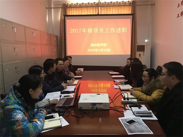 临床医学院全体辅导员围绕思想政治教育、学风建设、学生日常教育管理、党团建设、贫困生资助、就业指导等工作,结合学生特点和个人情况,对一学年的辅导员工作进行了全面、详实的述职汇报,并分享了自己的工作经验、工作创新和工作亮点,查找了存在的问题不足,提出了今后工作的意见建议。