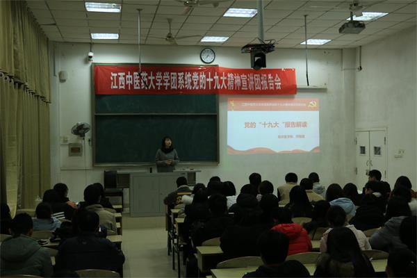 为深入贯彻学习党的十九大精神,掀起学习宣传贯彻党的十九大精神的热潮,我校成立了学团系统“学习宣传贯彻党的十九大精神宣讲团”。临床医学院团委负责人作为宣讲团成员之一,积极响应学校号召,于12月24日深入班级进行党的十九大精神宣讲活动。