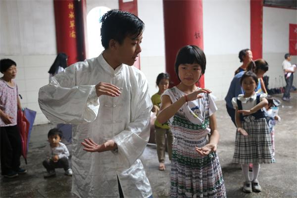 社会实践服务队还与当地贫困农村学生、留守儿童开展了“同在蓝天下,共筑中国梦”联谊活动。队员们给留守儿童赠送了学习用品,开展了中医药文化健康知识宣讲、中医传统功法传授、眼保健操穴位教学等活动,将中医药文化的种子扎根在了留守儿童的心中。