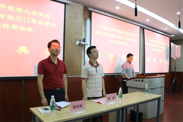 近日,中共江西中医药大学党校临床医学院分校2017春季学期入党积极分子党校培训班开班仪式在临床技能中心会议室顺利召开,临床医学院相关负责人及87名党课培训班学员参加了开班仪式。
