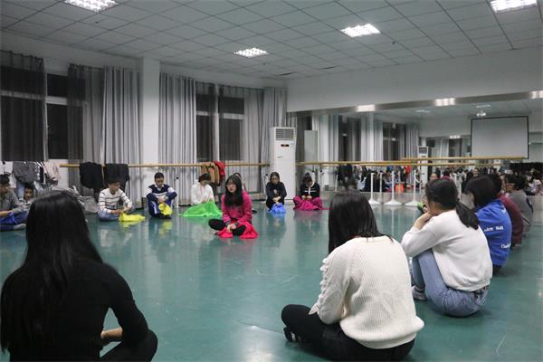 舞蹈是艺术治疗的一种,可以通过身体表达来处理心理困扰,是近年来比较流行的一种心理治疗法。刘燕老师首先用一种简单的活动——“跟我做”将大家的注意力带到活动现场,伴随着轻柔舒缓的音乐,再逐渐借用各种道具、游戏,帮助大家全身心投入于舞蹈之中。同学们逐渐舒展、放松自己的身体,感受身体能量的流动,相互分享交流,让自己平时无法表达的情感流淌出来。