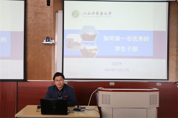 继临床医学院2016年业余团校暨学生干部培训班开班仪式与第一课结束后,第二课也在11月17日紧随而至。此次课程邀请到了我校人事处副处长艾卫平,主题为“如何做一名优秀的学生干部”。