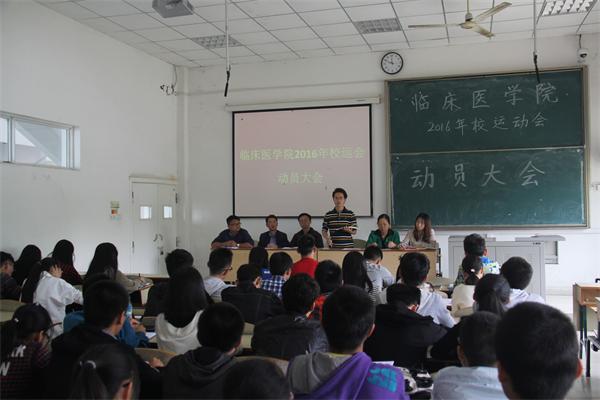 在学校第四届运动会来临之际,为充分调动运动员的积极性,保障训练期间各项服务工作有序进行,10月26日中午,临床医学院运动员动员大会在明志楼顺利举行,临床医学院学生会成员和运动员代表参加,院党委副书记、副院长刘海出席并讲话。