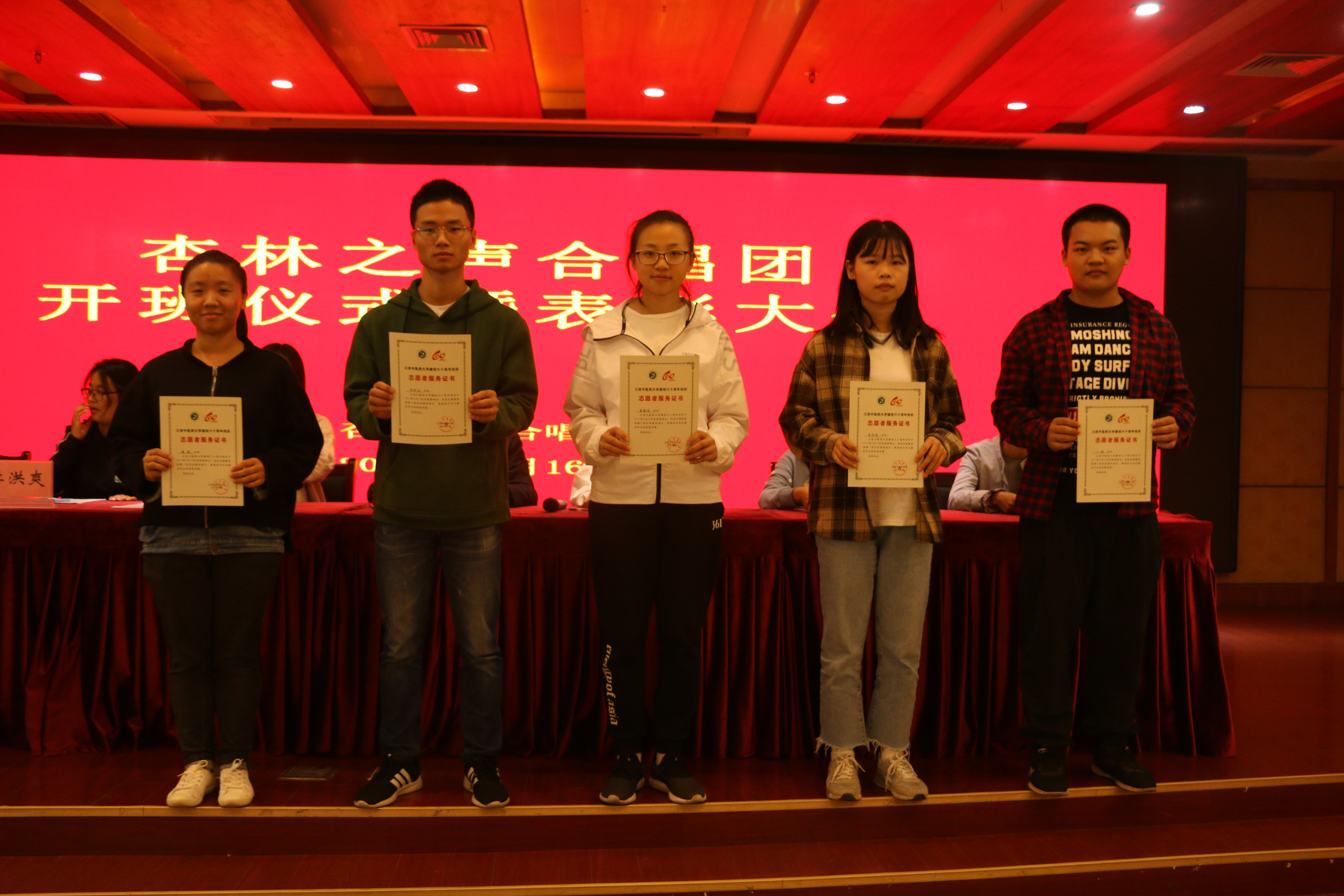 大会分别为建校六十周年文艺晚会志愿者和中华人民共和国70周年歌咏大会参与团员进行了表彰。自杏林之声合唱团成立以来,在各级领导、老师的关心和帮助下,合唱团克服困难,坚持不懈,不负众望,屡获佳绩,六连之冠,实至名归。此次表彰既是对合唱团付出的肯定,更是对未来的鞭策。
