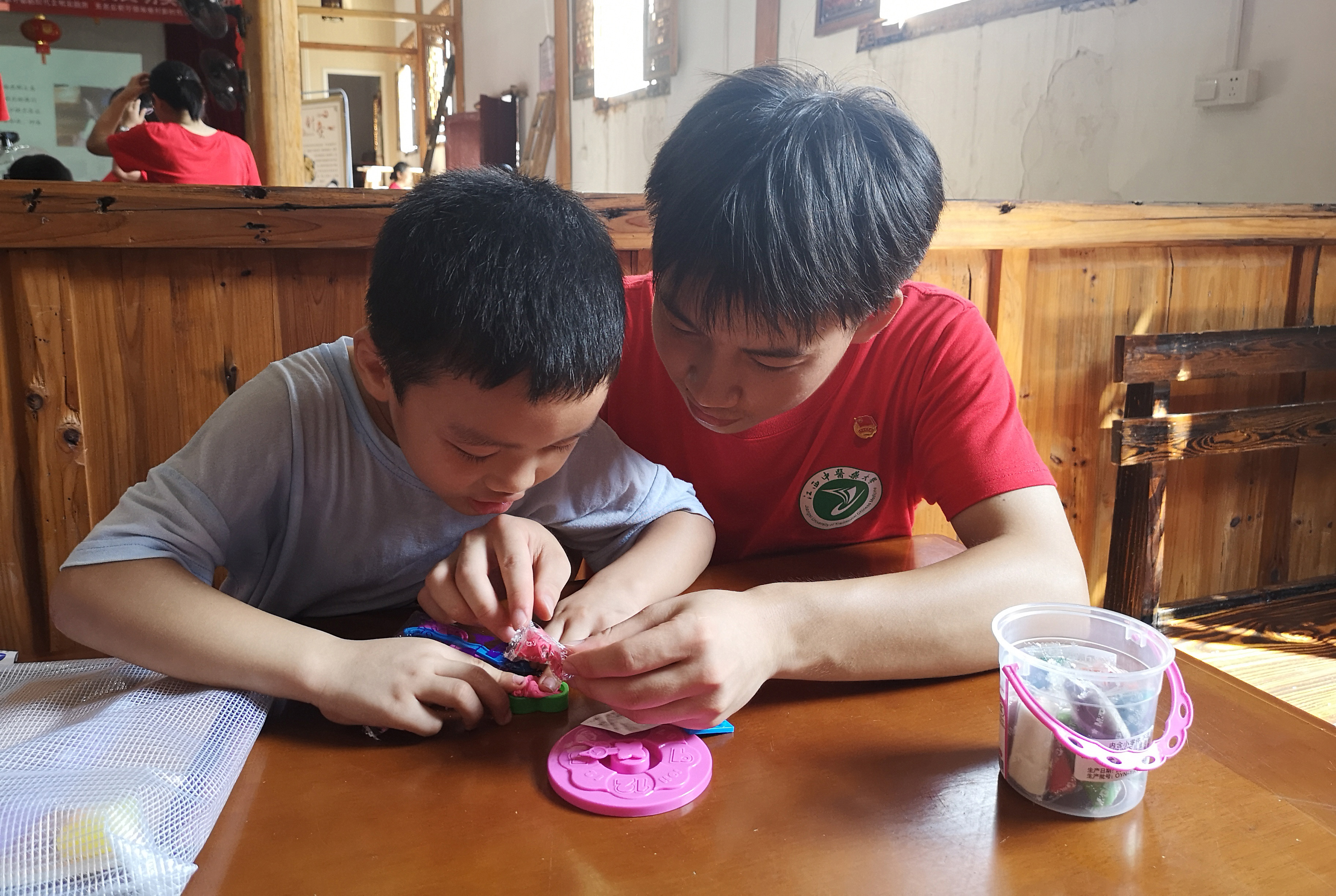 在璋塘村党群服务中心,服务队与村里的留守儿童开展了一场妙趣横生的联谊活动。服务队队员们与留守儿童一起做游戏、唱儿歌,孩子们天真无邪,嬉戏打闹,那一张张瘦削又充满活力的笑脸,那一双双渴求却透露出坚定的眼神,此情此景,服务队队员们仿佛也回到了孩童,忘却了烦恼和压力,融入到他们欢声笑语之中。游戏过后,服务队给孩子们送上文具礼品,千里鹅毛,礼轻情重,在小朋友们的心里播撒了爱与希望的种子。
