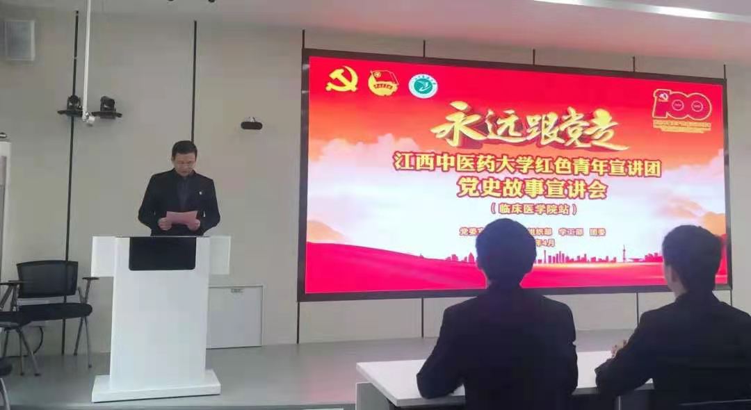 江中新闻网讯(通讯员 邓永文 学生记者 蔡舒雨)为全面深化青年学生的“四史”学习教育,用党的奋斗历程和伟大成就鼓励学生明确奋斗方向。4月16日,江西中医药大学“永远跟党走”党史故事宣讲会临床医学院站正式启动。
