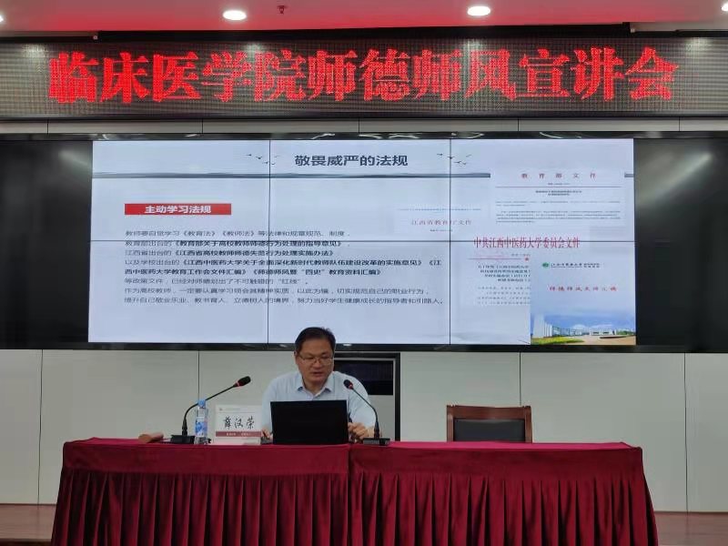江中新闻网讯(通讯员 晁芳芳)9月3日,临床医学院召开了秋季学期师德师风宣讲会。副院长薛汉荣、杨军平,各教研室主任、秘书和骨干教师参加了本次会议。
