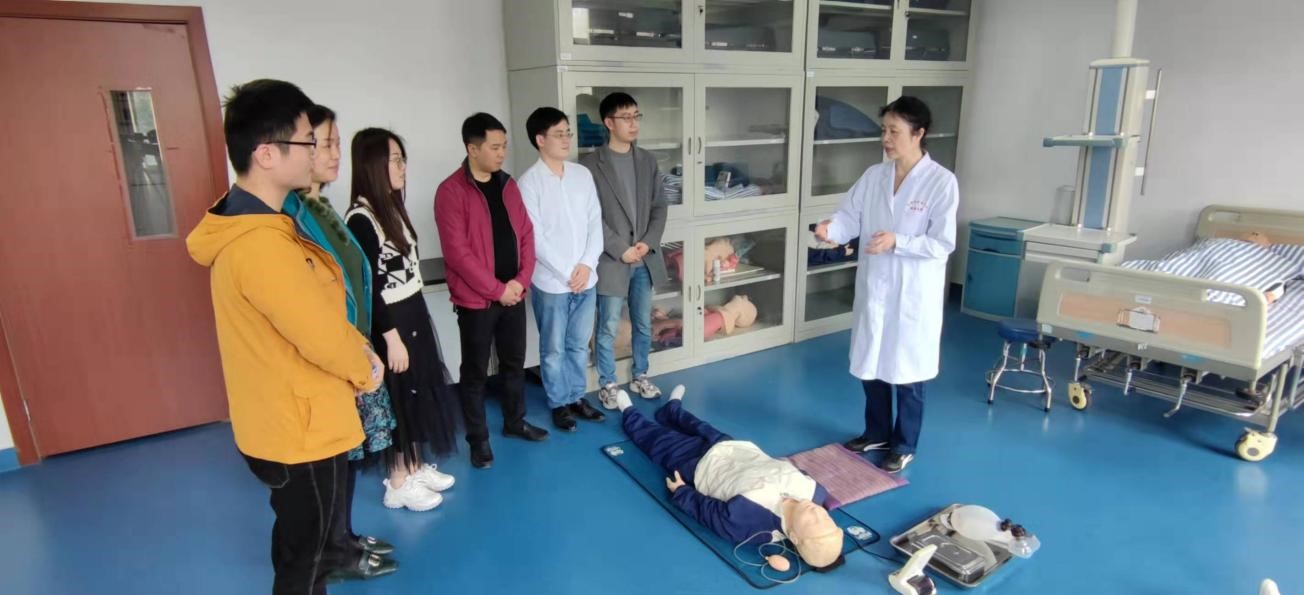图为3月10日下午阳明技能中心416教室,中西医结合内科学教研室龚向京主讲,开展《心肺复苏术、气囊-面罩简易呼吸器的使用》教师培训。