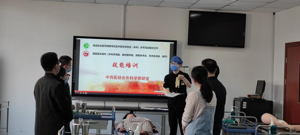 各项目主讲老师严格参照执业医师资格考试及中医学类专业(本科)水平测试考试技能操作大纲,讲解各项目重难点内容,并对学生难以掌握的细节进行了详细的操作演示。通过此次培训,统一了各技能项目的培训标准,为提高我校医学生技能水平奠定了基础。
