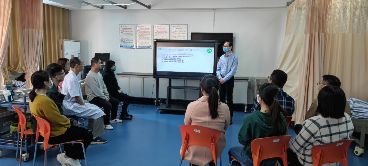 图为3月11日下午阳明技能中心415教室,内科学教研室李征锋主讲,开展《体格检查》教师培训。
