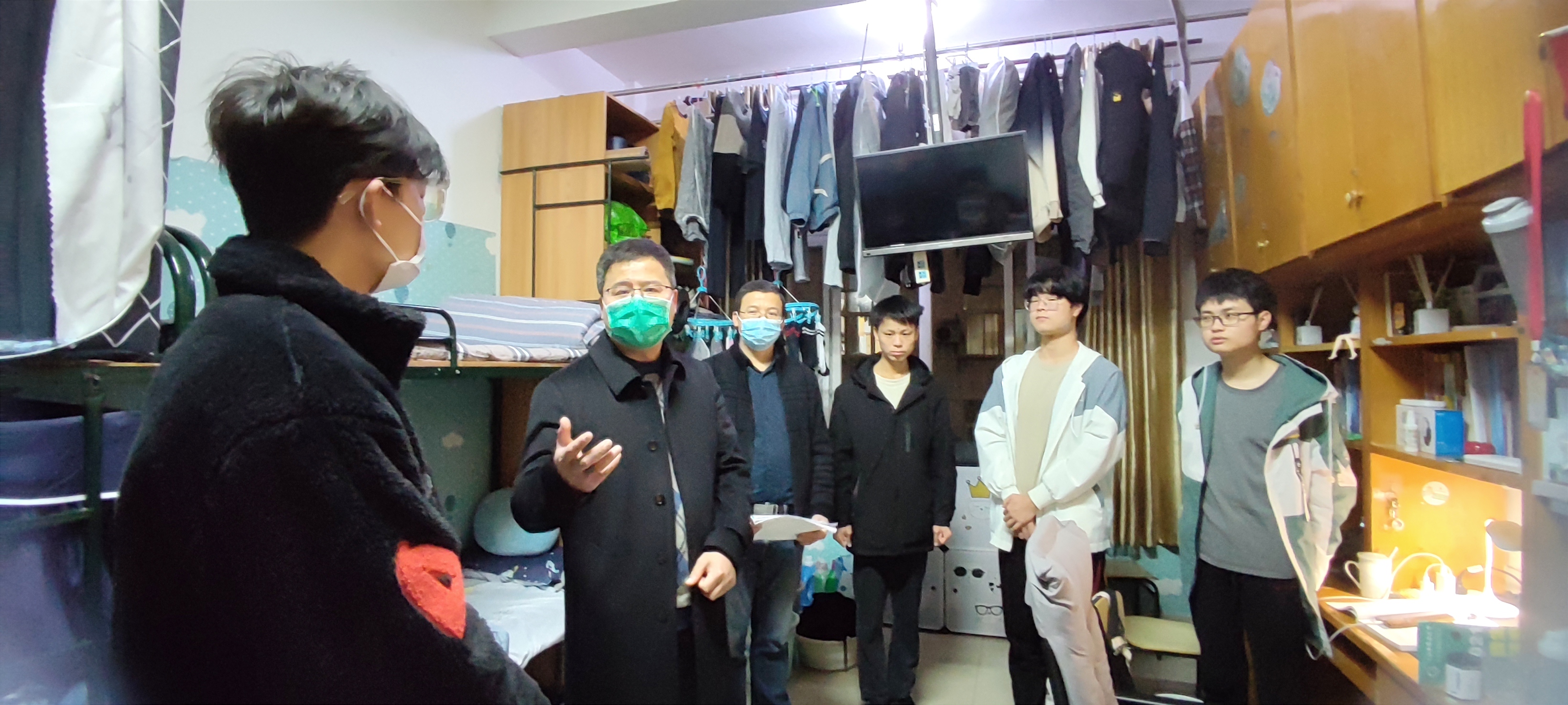 在宿舍走访中,雷志强书记亲切地询问了学生近期生活状况,贴心地嘱托学生做好个人日常防护,并提醒同学们将物品摆放整齐,寝室垃圾及时清理,避免产生异味,有需要帮助的要及时向学院、学校反馈。与此同时,他也督促学生要按要求上好网课,配合学校相关疫情防控工作,遵守学校相关规定,佩戴好口罩,保持宿舍卫生干净整洁等。