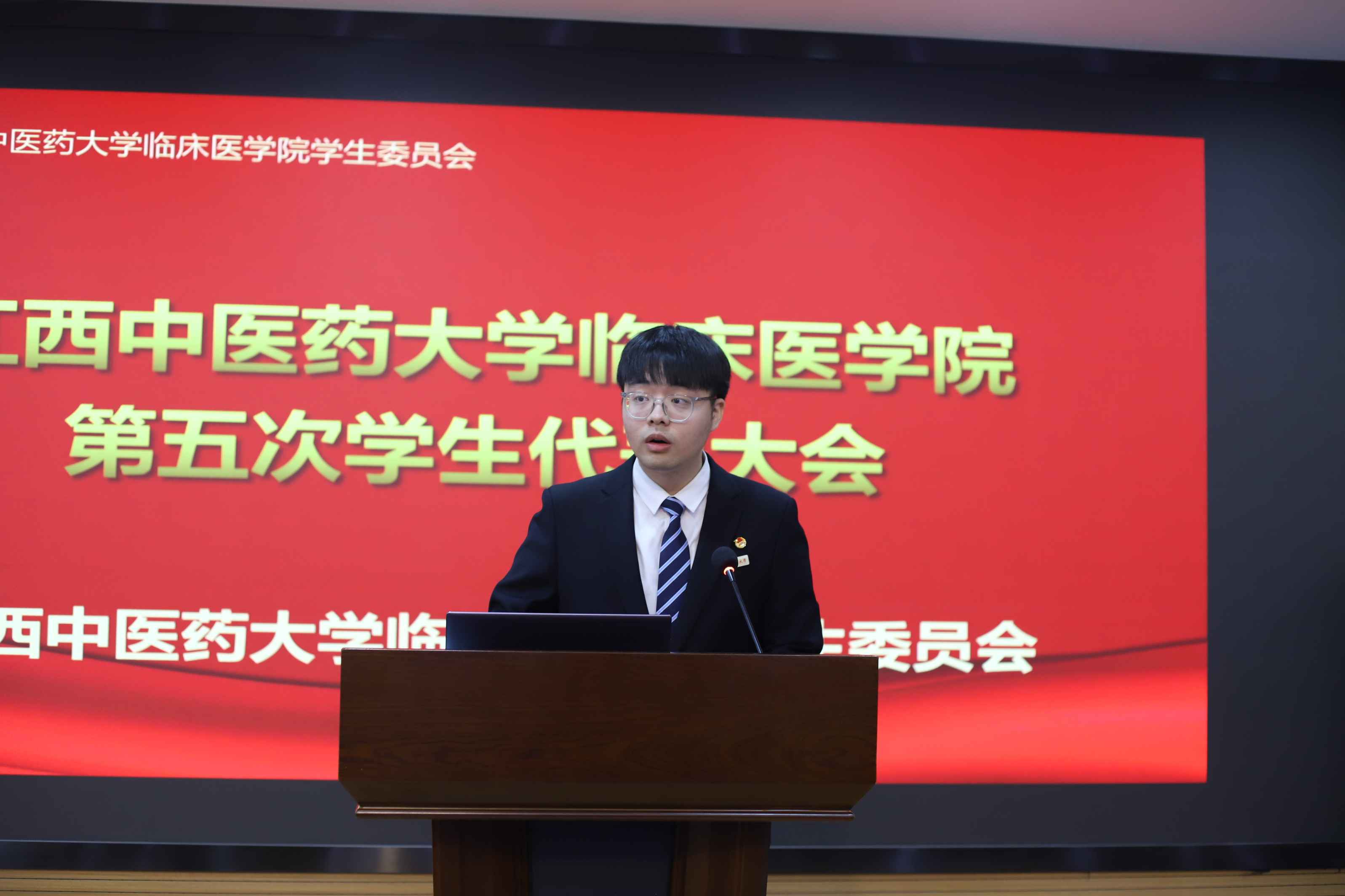 大会听取并审议了杨臻同学代表临床医学院第四届学生委员会工作的报告,他以“锐意进取谋发展,深化改革担重任将青春力量投入到民族复兴的伟大事业中去”为题作了第四届学生会工作报告。