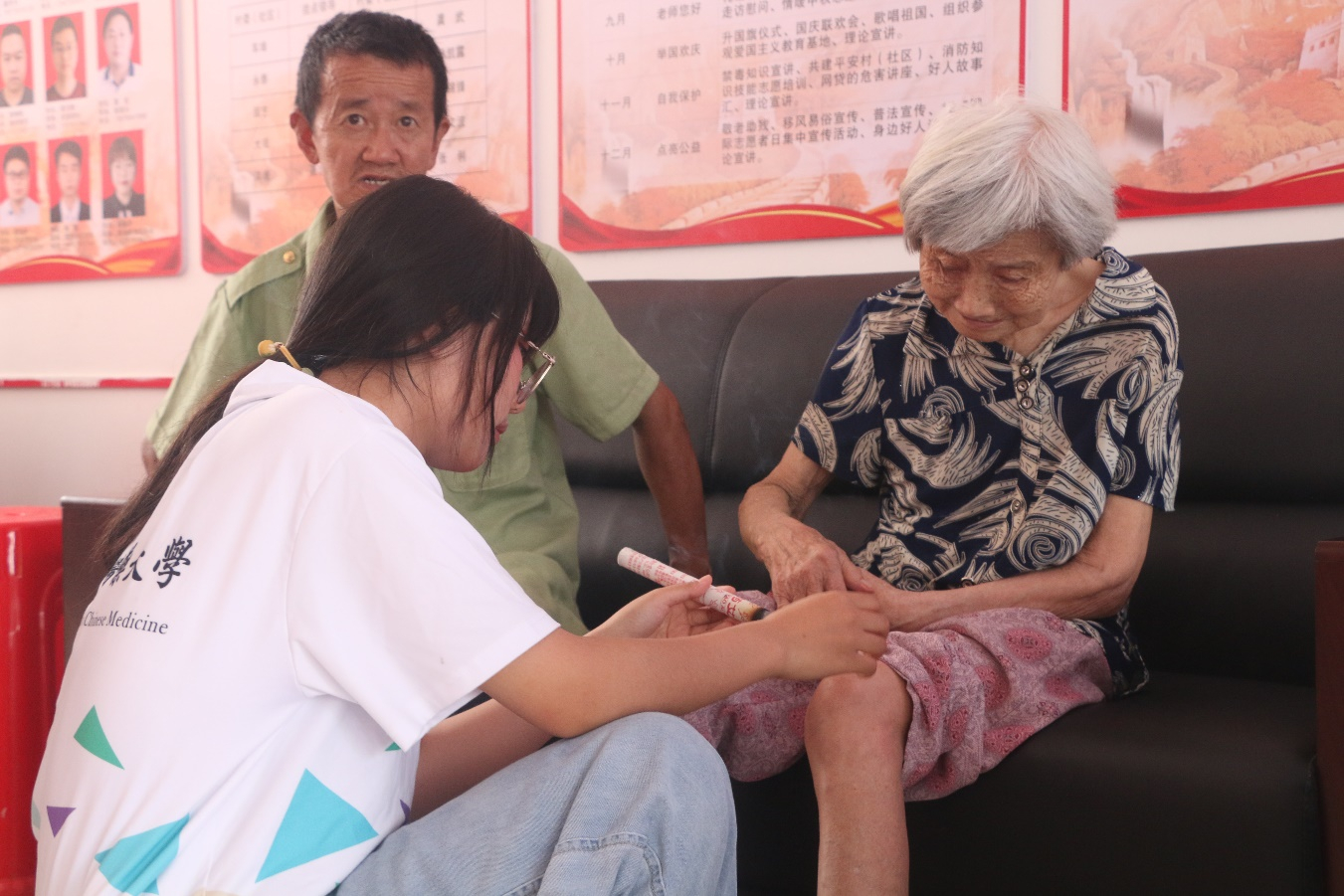 志愿者们还为前来义诊的居民带来了推拿、艾灸等独具中医药特色的健康服务,尽自己所学为大家舒筋活络、缓解疼痛,帮助居民在了解自身健康情况的同时,学习中医养生保健知识。