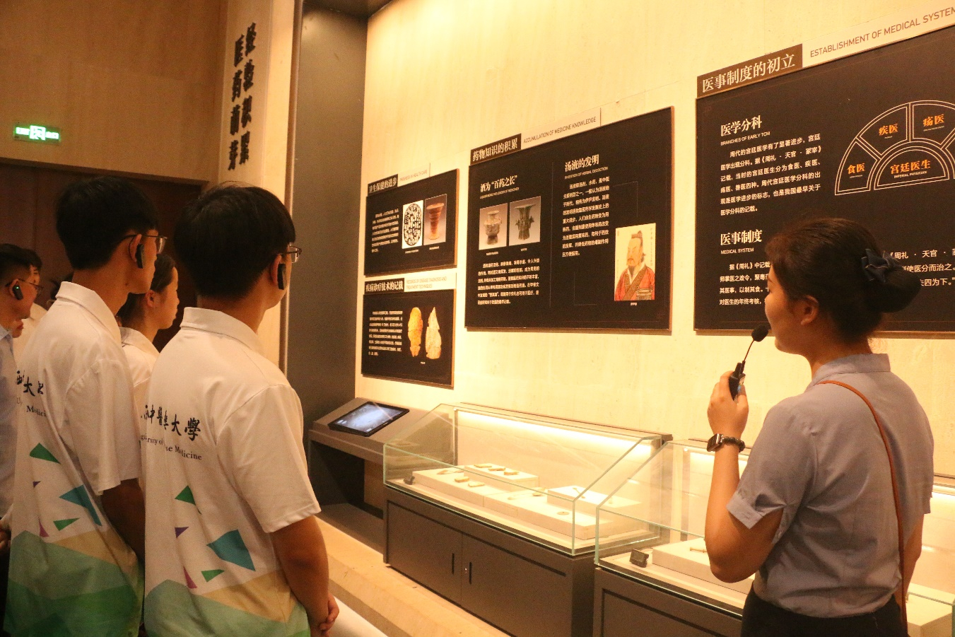 博览本草,承袭医脉。志愿者们来到樟树市岐黄小镇中国药都中医药博物馆,近距离领略国医之美与中药之奇,从中医药文化精髓、中医药发展史、樟帮中药炮制工艺等方面,全方位探寻中医药的深厚底蕴。服务队全体成员在馆内大厅进行了庄严的医学生宣誓,彰显杏林学子的使命担当。在先贤葛玄的巨型雕像前,志愿者们和樟树实验小学的小朋友一同练习太极功法、共同诵读《大医精诚》,一呼一吸之间感受传统功法的独特魅力,一字一句之间领悟医者仁心的深刻内涵,在青少年心中播撒下中医药文化和传统文化的种子。