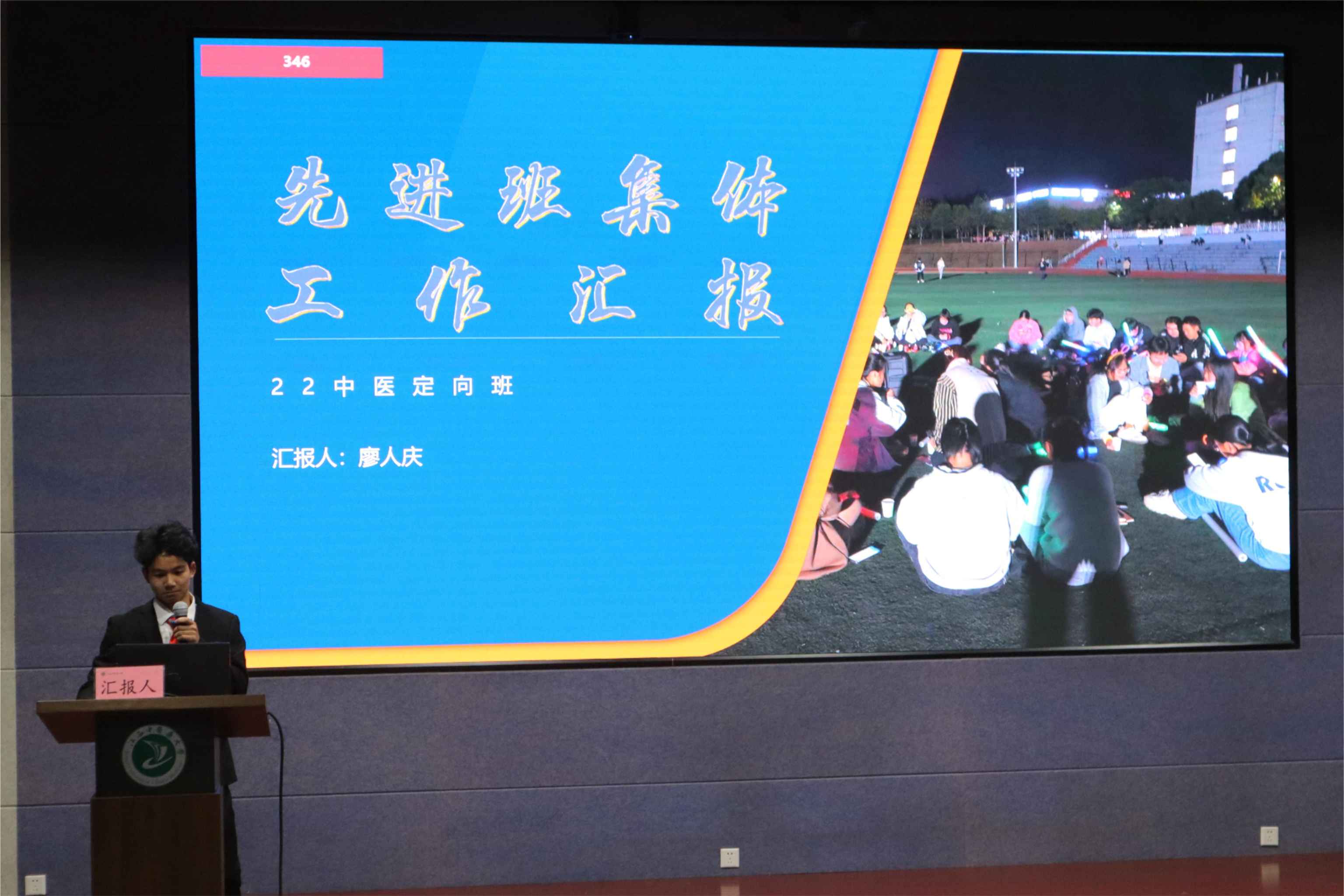 最后,符雨薇老师和黄鑫老师进行了点评。符雨薇老师首先对同学们认真汇报的态度表示肯定,随后指出了各班汇报中存在的不足之处并提出相关建议。黄鑫老师对各班集体昂扬奋发之态表示赞扬,同时对在场的23级新生表示期许。经过一番激烈的角逐,2021中医养生1班、2021中医骨伤3班、2021中医骨伤2班、2021中西医临床5班、2021中医7班、2021中医6班、2021中医养生2班,2022中医养生2班、2022中医骨伤5班、2022中医5班、2022中医定向班、2022中医骨伤1班、2022中医1班、2022中医骨伤3班、2022中医骨伤2班荣获本次先进班集体称号。