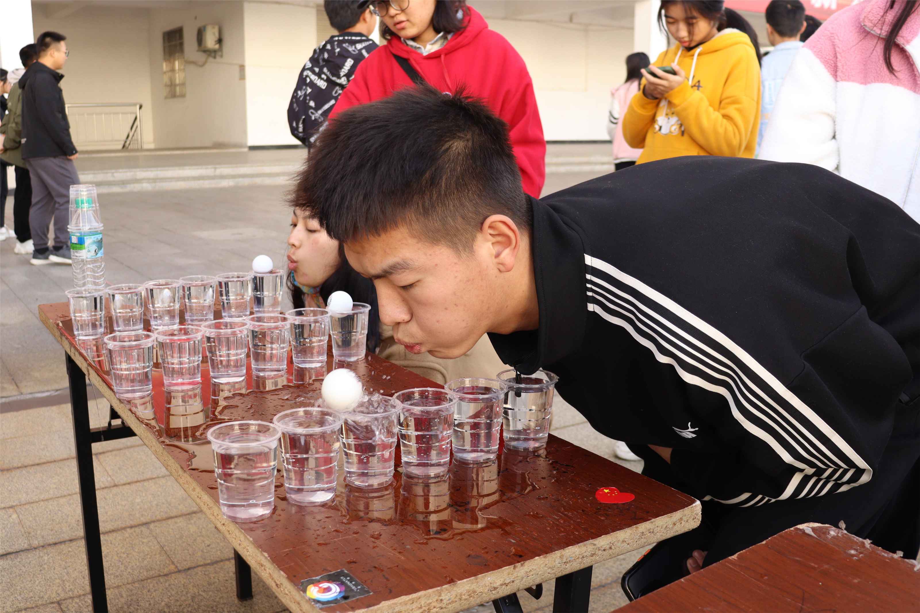 趣味运动会首先开展的活动是“两人三足”跑,参与人员两两一组,跌跌撞撞地在起点和终点之间折返跑。随后开始“一二三木头人”小游戏,五名参与人员分别扮演木头人和移动者,在工作人员的口令下开展游戏。紧接着进行吹乒乓球和背夹球游戏,两人一组,背对而站,中间夹一个气球,从起点运至终点,中途双手不能触碰气球,按完成时间长短进行排名。各小组配合默契、失误遗憾等不同表现为现场带来无限欢乐。最后在“挤眉弄眼”游戏中,同学们纷纷调动自己的五官,努力把饼干从额头移到嘴里,现场气氛十分热烈,欢声笑语不断。