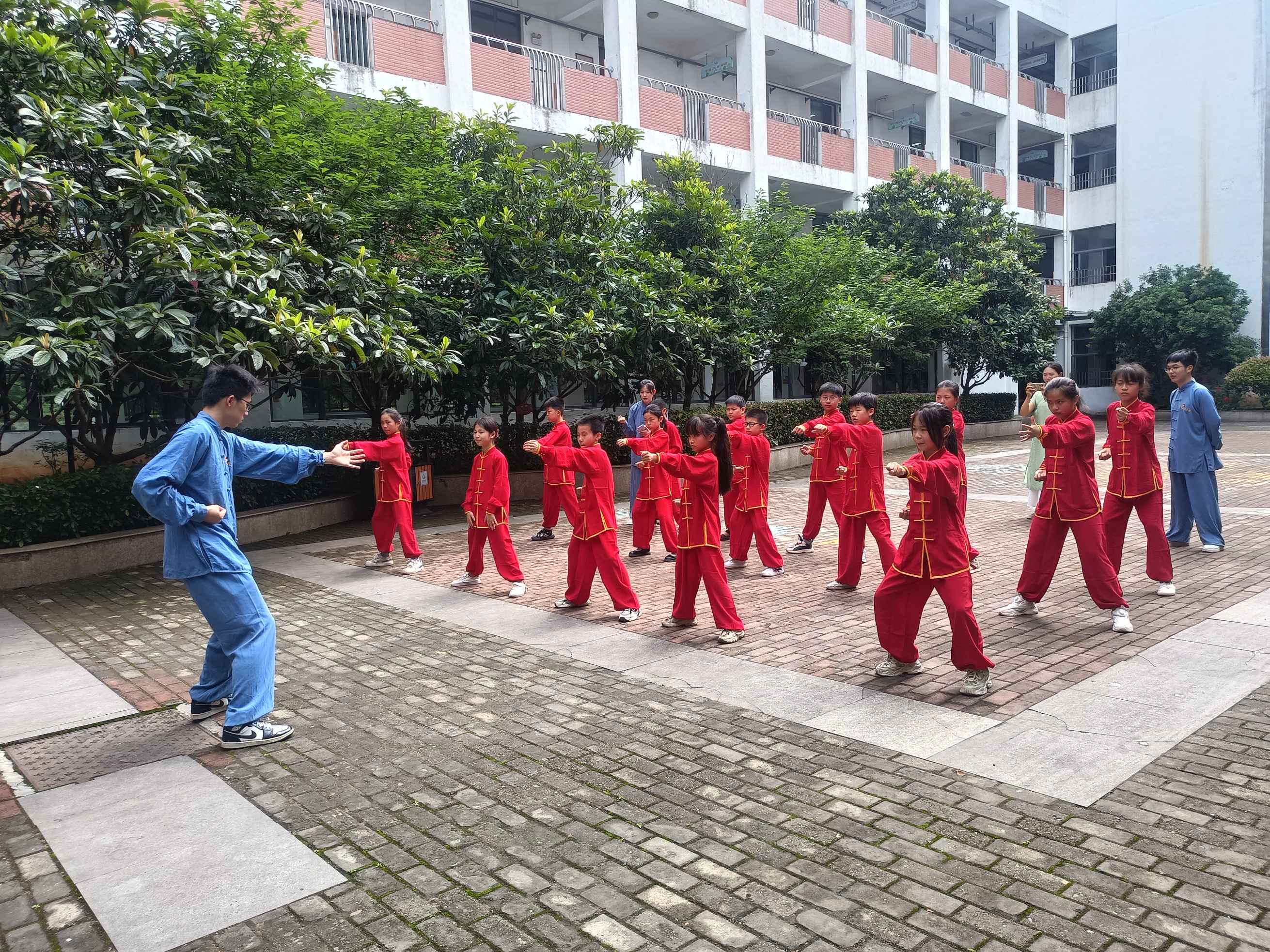 随后,支部学生党员带领小学生们共同练习八段锦,同时向他们介绍传统养生功法所蕴含的保健智慧。伴随着八段锦音乐,大家神情专注,手臂缓慢起落、拉伸,时而屈膝下蹲,时而徐徐起立。