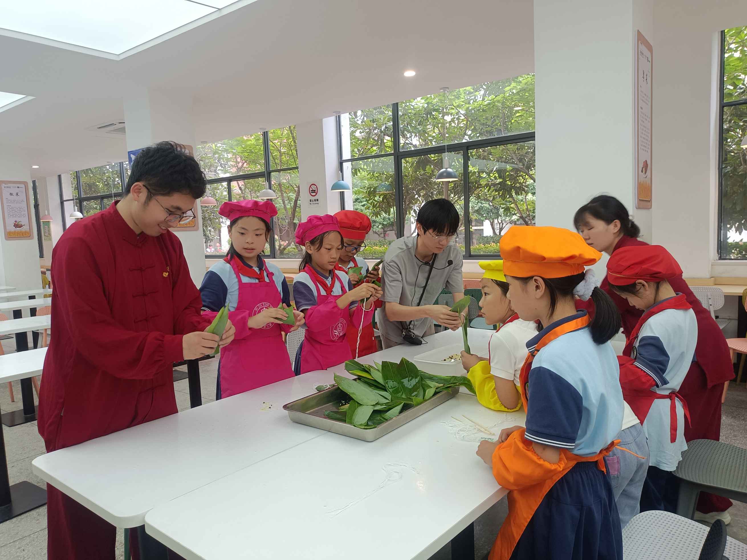 活动后期,学生党员和小朋友们一同包粽子、制作中药香囊和中药特色饰品,通过具体实践引导孩子们切身体会端午节传统文化和中医药知识的独特内涵,营造了浓烈的节日氛围。