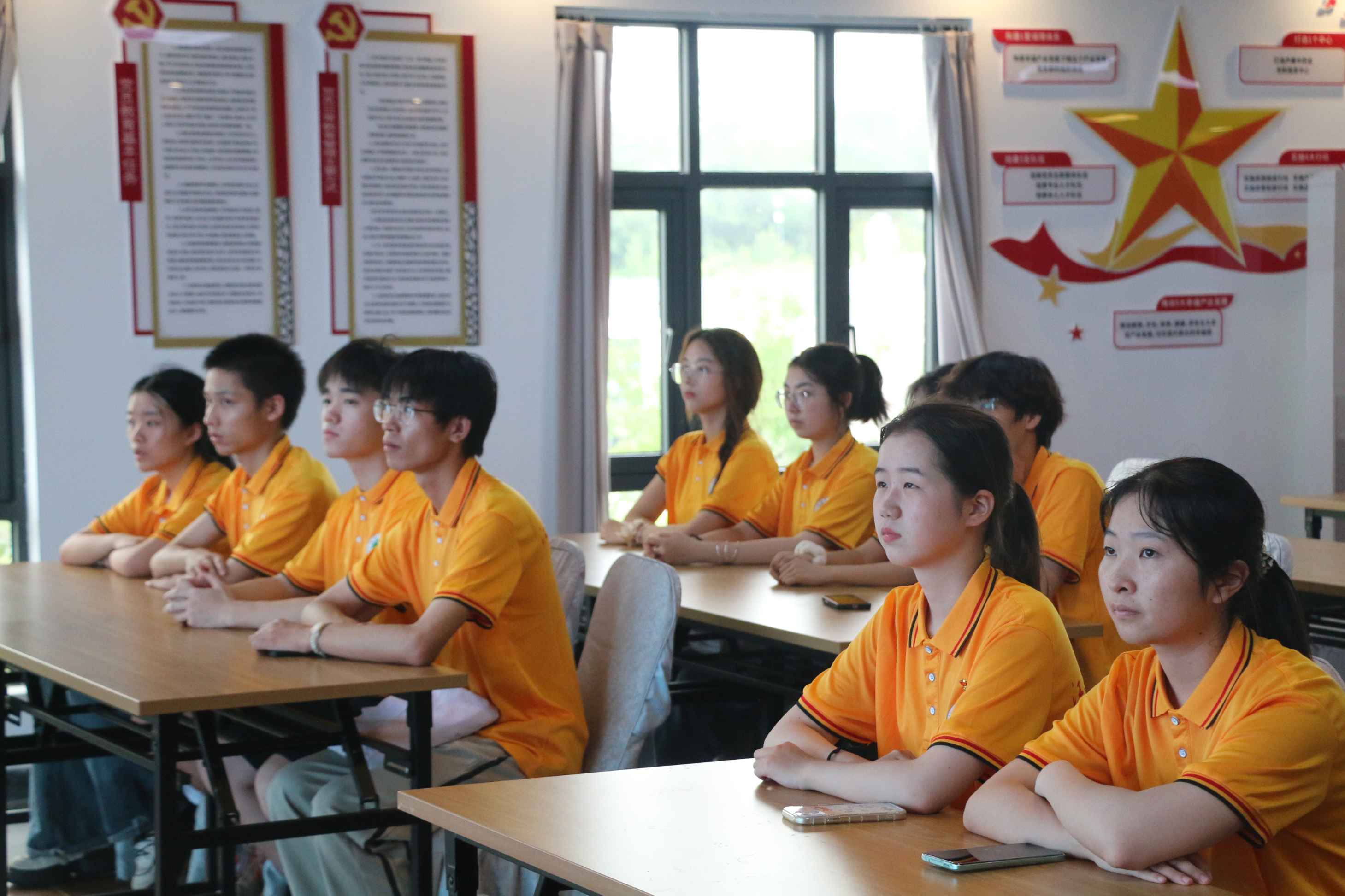 董奉杏成林,陶潜菊盈把。在杏林文化馆,队员们坐姿端正,神情专注,认真聆听学生讲解员引人入胜地介绍董奉的生平事迹。患重病治愈者,为他栽杏树五株,病情轻微者痊愈后栽一株,如此数年,共有十万余株,郁然成林。董奉仁心济世、不计名利、诚惠为民的精神,深深触动着身为中医药事业接班人的队员们。