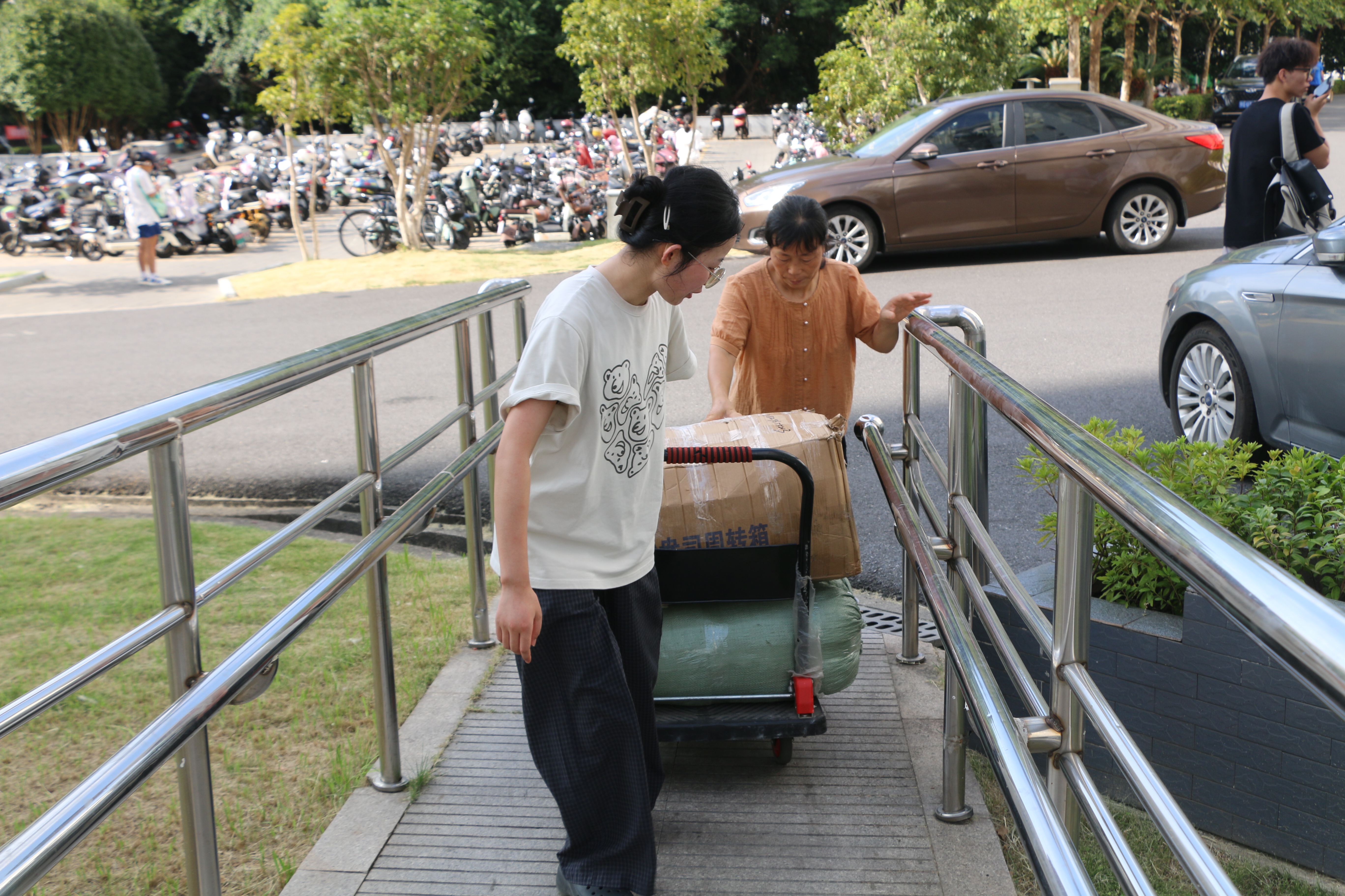 以心迎新,服务贴心。学院设置了前台迎新点、“一对三”志愿服务组和灵活机动志愿组。迎新期间,身穿印有学院logo的志愿者和新生班助们兵分几路,在烈日炎炎下各司其职,通力合作,协助新生顺利完成报到,帮助新生搬运行李,向新生及其家长介绍学校历史文化和各类建筑。同时,新生辅导员和班助前往宿舍区,与新生和家长亲切交流,了解新生住宿情况,为他们答疑解惑。学院通过实施“一对三”精准服务及灵活机动的志愿服务模式,实现了从校门到宿舍无缝衔接的“一条龙”服务。