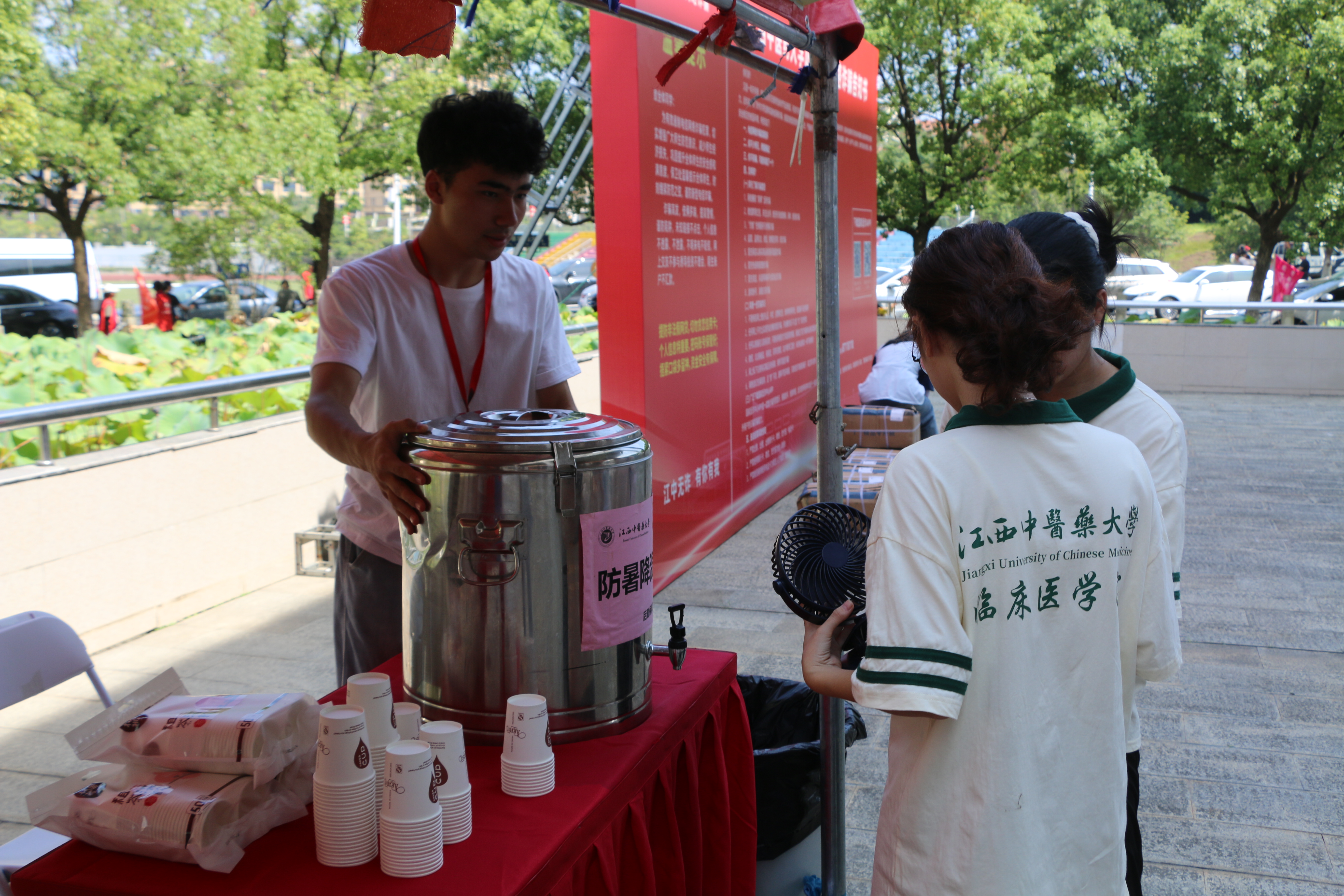 此外,学院还结合专业特色,精心准备了装有学院专属logo和明信片的校园卡套、印有药材解说的精美小扇子等开学大礼包和解暑降湿茶,并在迎新处设置了打卡点和签名墙,让新生们的开学报到充满仪式感。校园内随处可见志愿者们忙碌而有序的身影,无微不至的贴心服务,让每一位新生和家长都感受到了学院师生的热情与温暖。