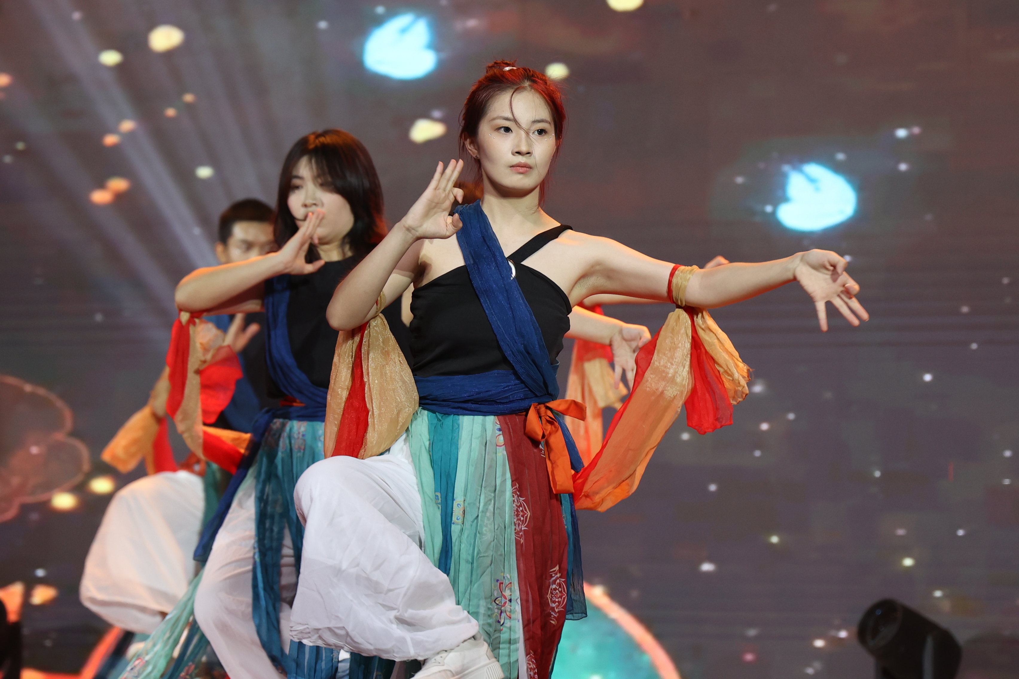 见面会结束,“逐梦山海,奋楫远航”迎新晚会在热烈的掌声中拉开帷幕。动感十足的开场舞中,舞者们身姿矫健,步伐轻盈,以炫目的灯光和激情四溢的音乐为背景,迅速点燃了现场的气氛。随着音乐的节拍,全场观众也被带入了青春的律动之中,感受到了大学生活的无限活力。气势磅礴的军体拳表演《破晓》的表演者们身着军装,动作整齐划一,展现出军人般的刚毅与力量,每一个出拳、踢腿的动作都彰显出坚毅与果敢,仿佛在向新生们传递着“勇敢追梦,无畏前行”的信念。功法表演《炼炁》展现了中国传统武术的独特魅力。表演者们在舒缓的音乐中,以柔和却不失力量的动作,诠释了太极文化的精髓。观众们屏息凝神,仿佛置身于一片宁静的山水之间,感受到了内心的平静与和谐。晚会在合唱《启程》的歌声中落下帷幕,全体参演者与观众齐声高唱,歌声中充满了对未来的憧憬与希望。