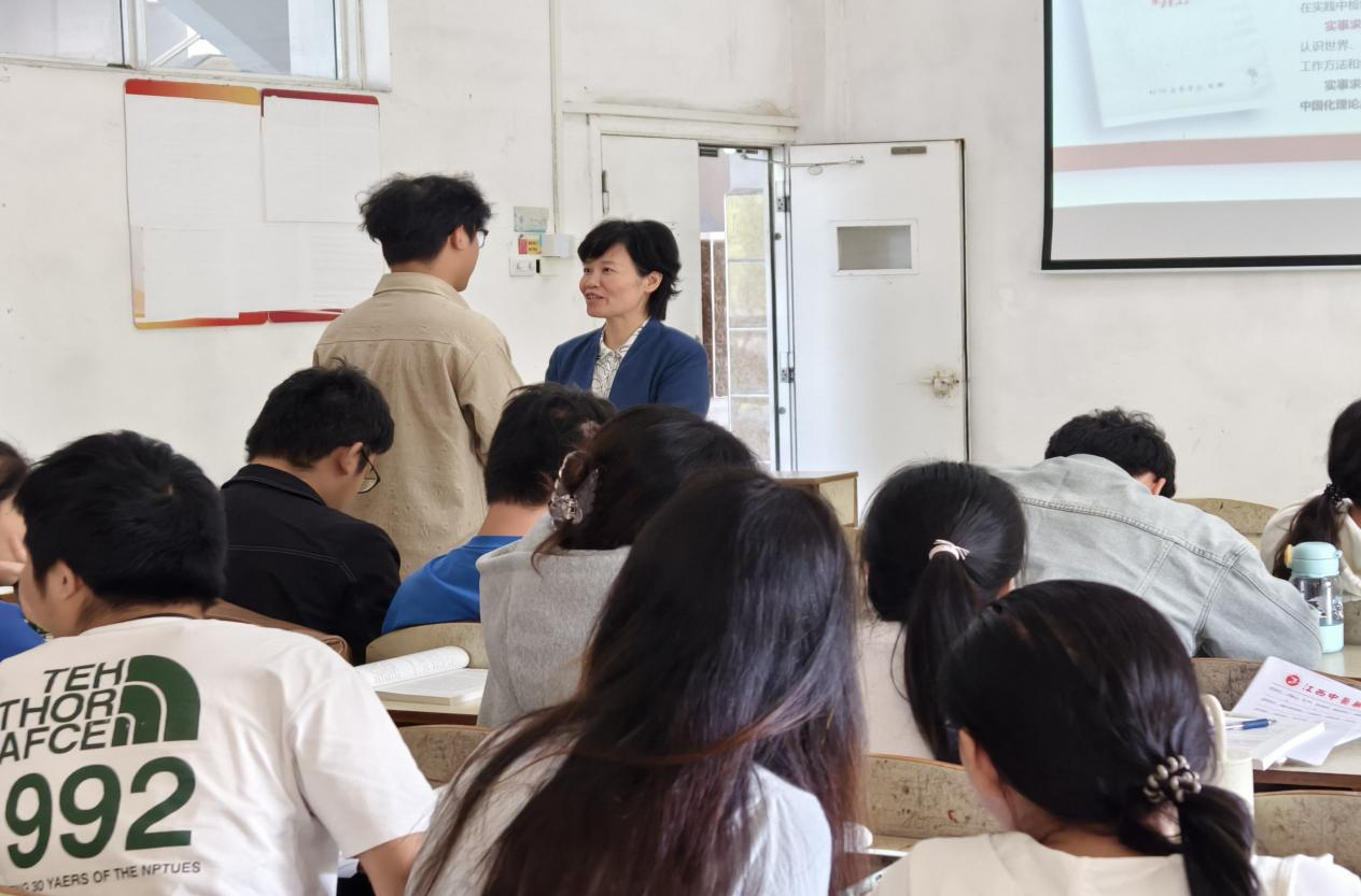 校长朱卫丰走进2022级中西医临床3班《毛泽东思想概论》课堂,巡视课堂情况,检查教师授课质量、学生出勤及听课情况,并坐到课桌前认真听课,同时针对教学中发现的问题,给予具体的意见和建议。