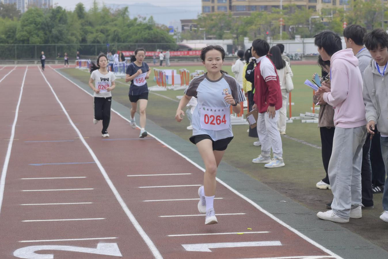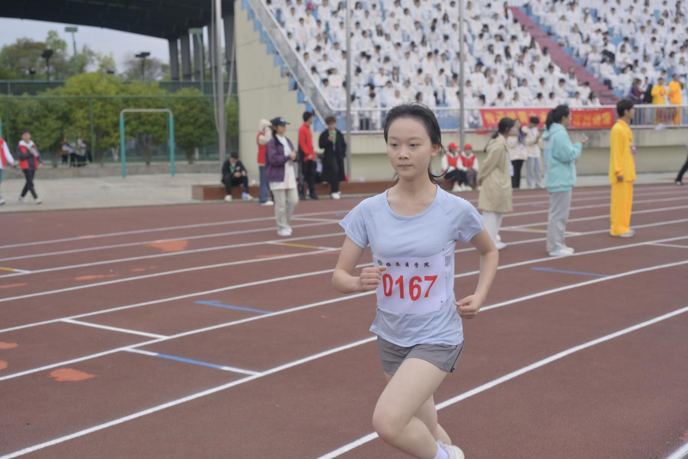 预备,起跑,加速,冲刺……邓柳玥在最后关头没有丝毫松懈,咬紧牙关,冲向终点。当邓柳玥回忆起整场比赛时,露出淡淡的笑容,“赛前我很激动,也很紧张,但当我迈开第一步,听到观众席上的同学为我加油的呐喊声,我的心便平静了下来,于是我沉浸享受其中,只专注于眼前的跑道。”在比赛途中,汗水缓缓从脸颊流下,体力慢慢消耗,邓柳玥在心中不断为自己加油“快点,快点,再快一点。”直到冲过终点线,她才彻底放松身体。正是因为邓柳玥的坚持、努力和勤奋,她才获得本次运动会女子甲组1500米的冠军。