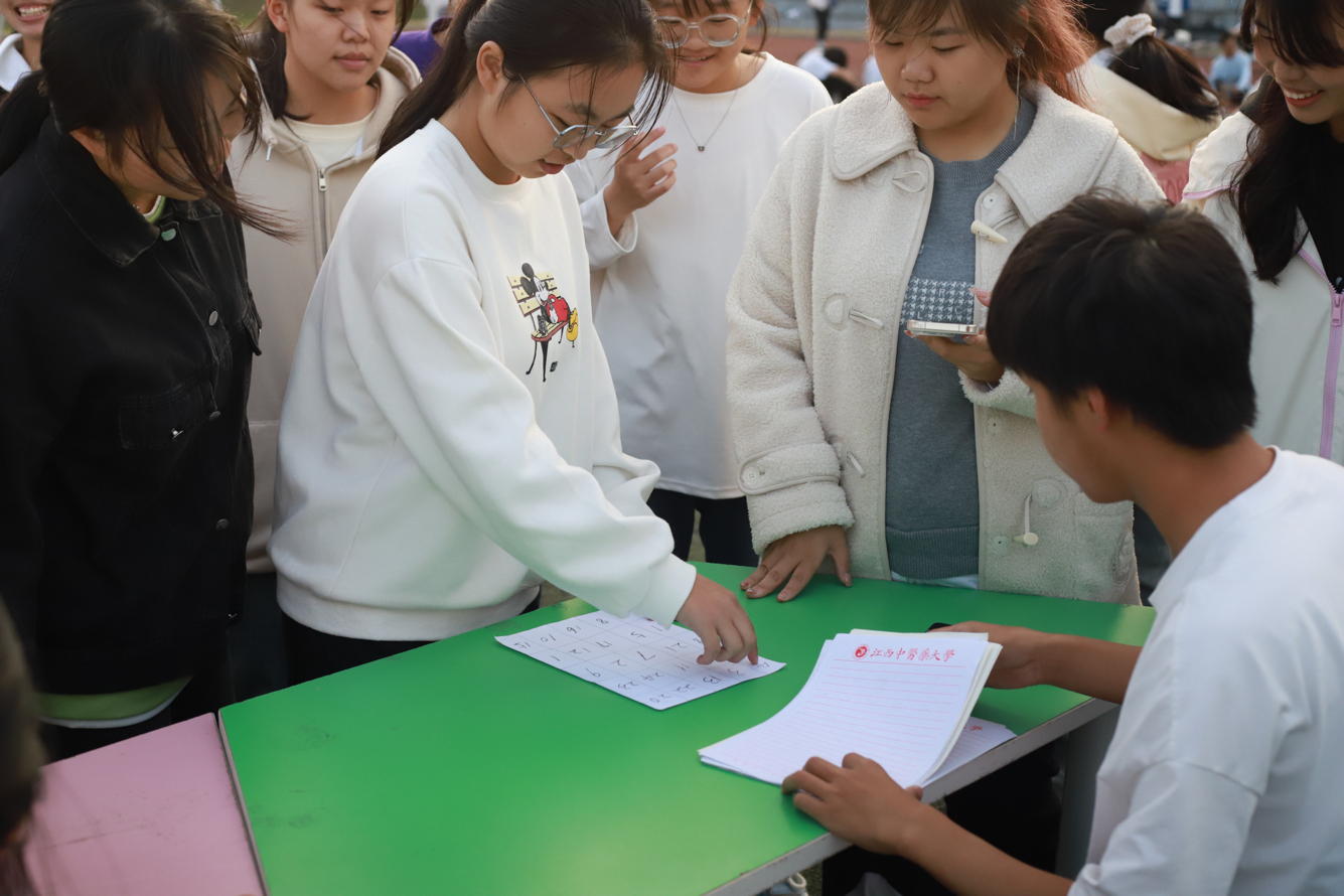 本次活动分为“五人四足”、“穿越彩带环”和“舒尔特方格”三个游戏环节。活动现场,同学们沉浸式体验各项活动。在“五人四足”环节,选手们迅速绑腿,以惊人的默契向前冲刺,体现了团队之间的紧密合作与信任。“穿越彩带环”活动中,选手们手拉手,共同穿越彩带环,同学们相互配合,逐渐认识到团队力量才是脱颖而出的关键。“舒尔特方格”游戏将活动气氛推向高潮,选手们站在写满数字的5x5方格前,时而凝神静气,时而迅速反应,最终凭借团队的力量成功完成挑战,现场欢呼声此起彼伏。