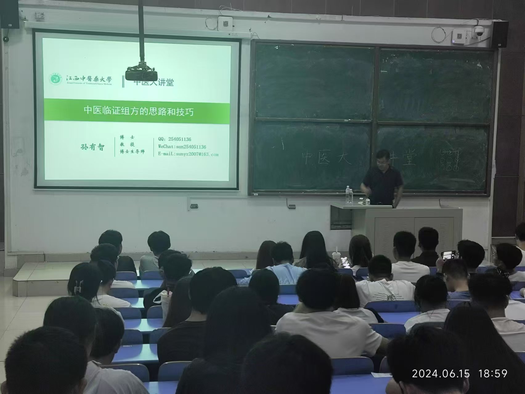 6月15日,临床医学院在明志楼T2教室举行第八十期中医大讲堂。著名中医专家孙有智院长带来了一场关于中医临证组方基本思路和技巧的讲座,充实有趣的内容吸引了众多杏林学子。