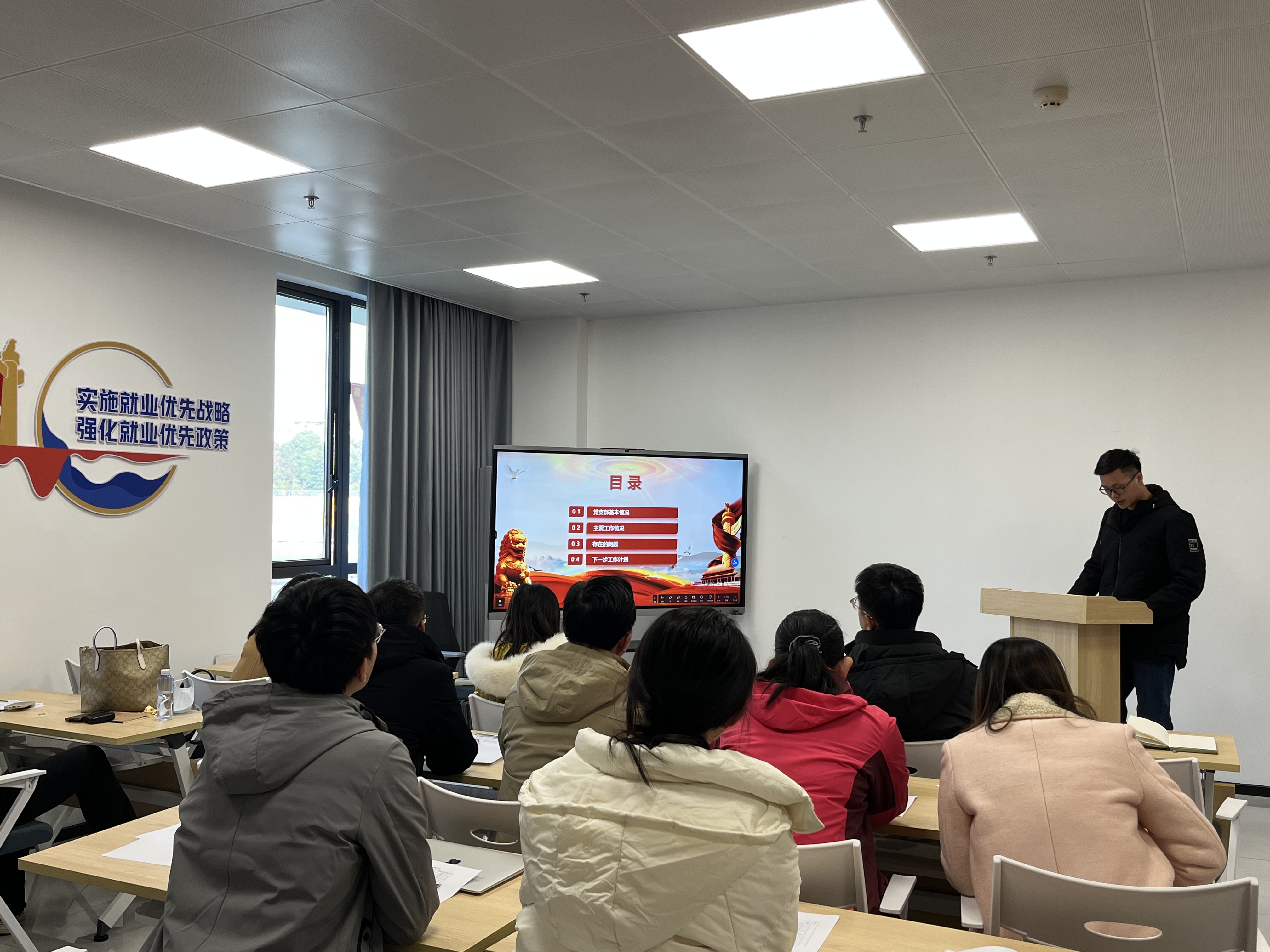 12位学生党支部书记依次进行年度述职汇报,分别从自身工作实际出发,围绕宣传和执行党的路线方针政策以及上级党组织决议、理论武装和思想引领、党员教育管理和监督服务、严格党内政治生活、党员发展、思想政治和意识形态工作、党风廉政建设、发挥党支部和党员作用、自身建设和特色工作等十个方面对2024年度的党支部工作进行了全面总结。详实的数据和丰富的图片,全方位多角度地展示了支部实绩。同时,针对工作中存在的问题与不足,各支部书记实事求是地总结经验并提出具体改进措施。