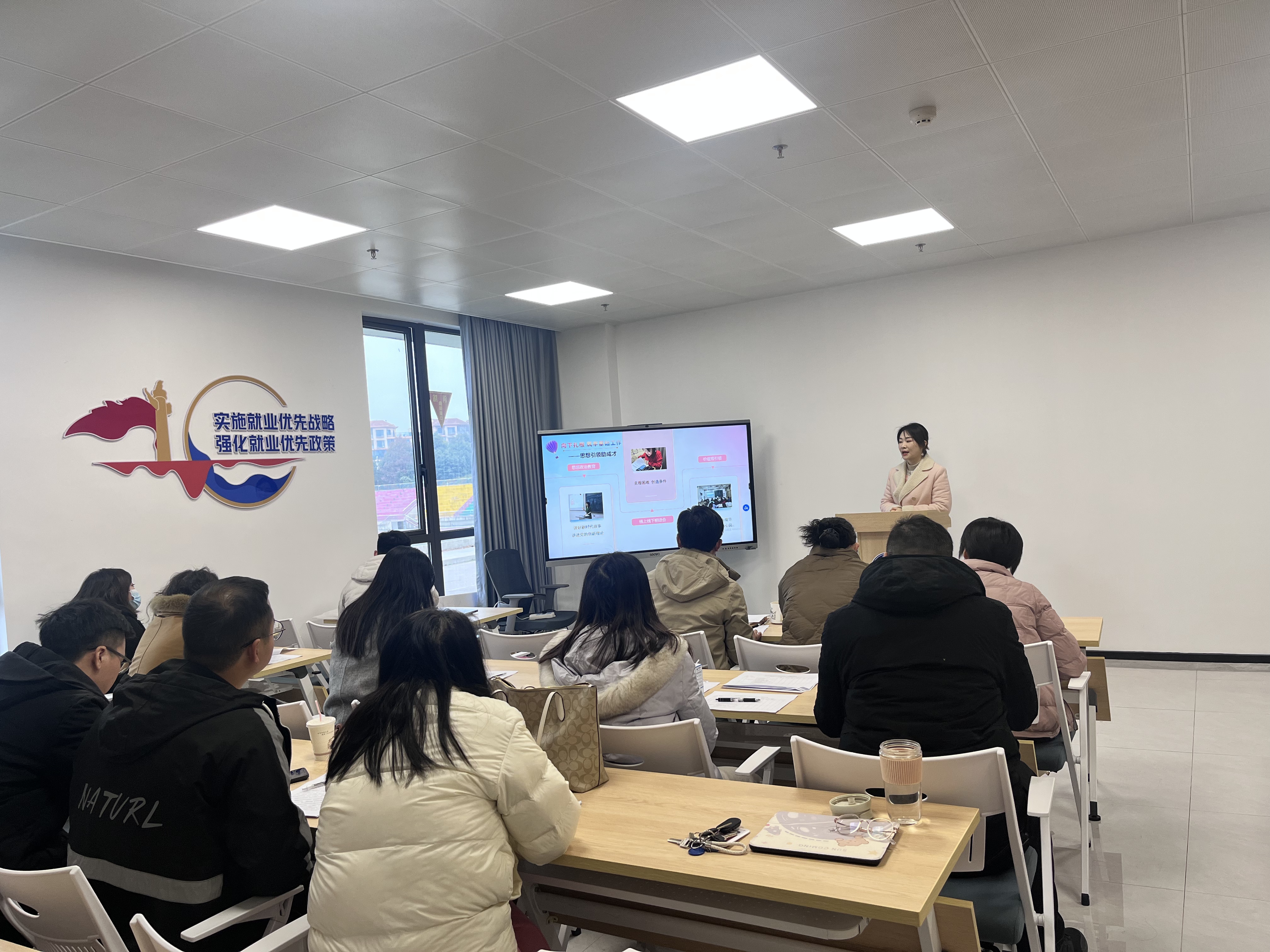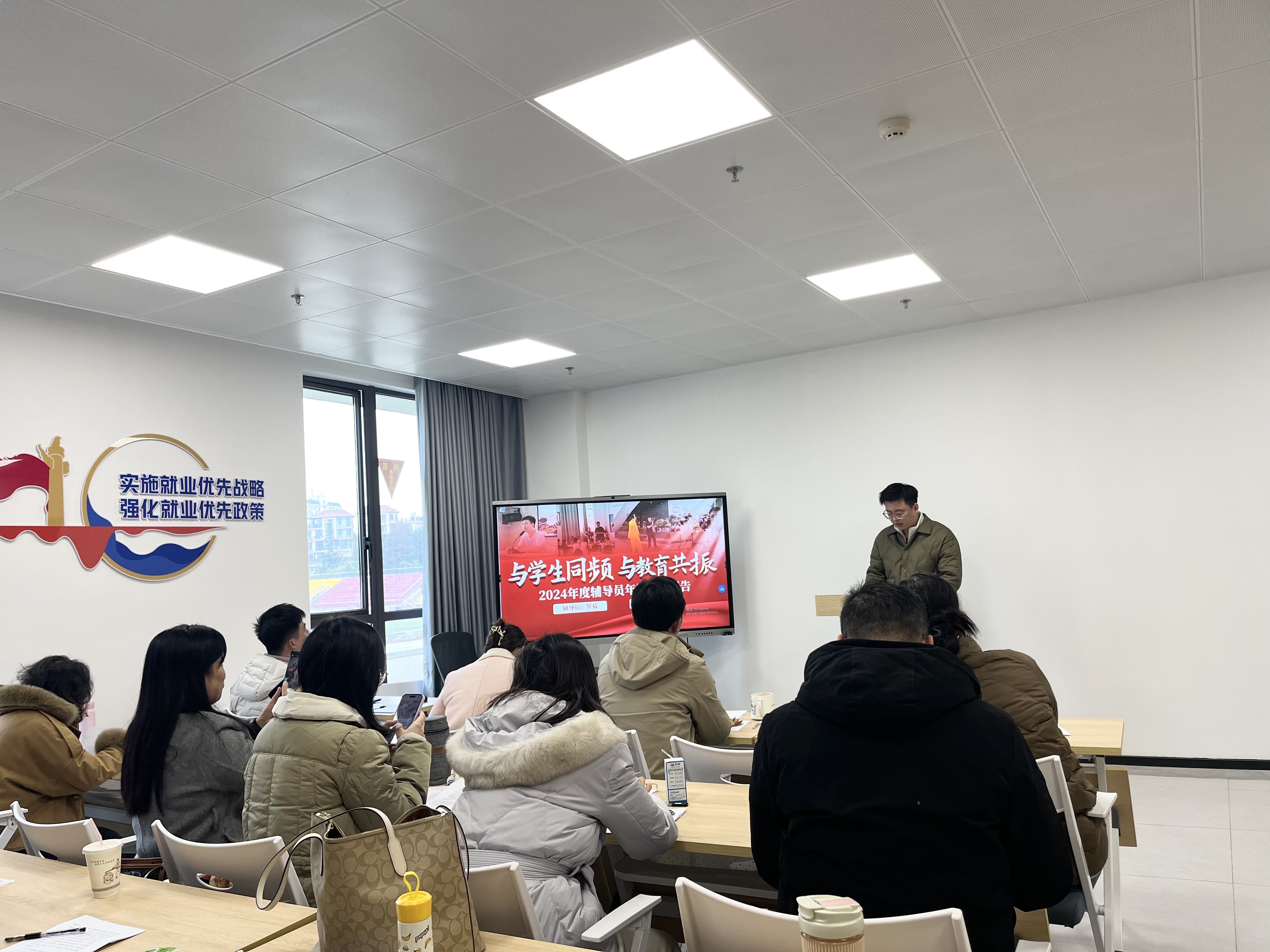 各辅导员依次进行年度述职汇报,从自身工作实际出发,围绕带班情况、思想建设、党团和班级建设、制度建设、学风建设、学生日常事务管理、特色工作、实际成效以及所负责的专项工作等方面对2024年的工作进行了系统总结,利用详实的数据和图片,全方位多角度地展现了扎实的成绩。同时,针对工作中存在的问题与不足,各位辅导员实事求是地进行总结和反思,并对下一年的工作目标和发展方向进行了科学规划。