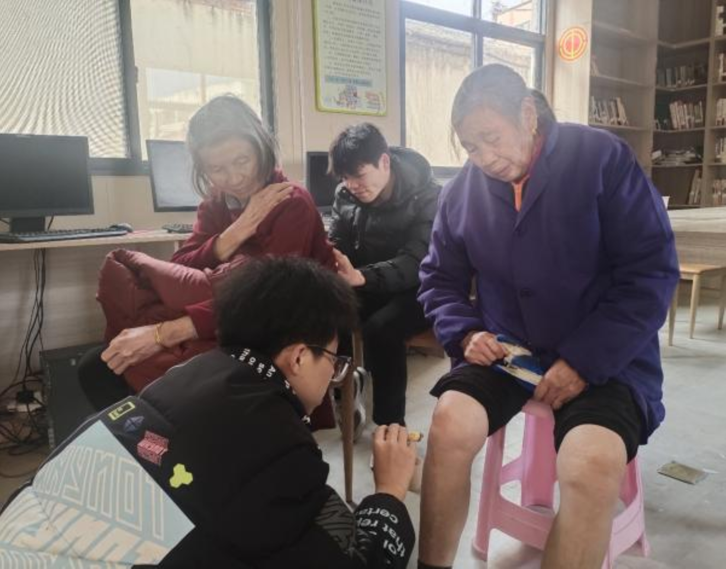 活动现场,学生党员们为社区居民提供血压测量、推拿按摩以及艾灸等具有中医特色的健康服务,耐心解答社区居民的健康问题,从生活习惯、日常饮食等方面给予健康指导,帮助居民们树立健康生活意识。