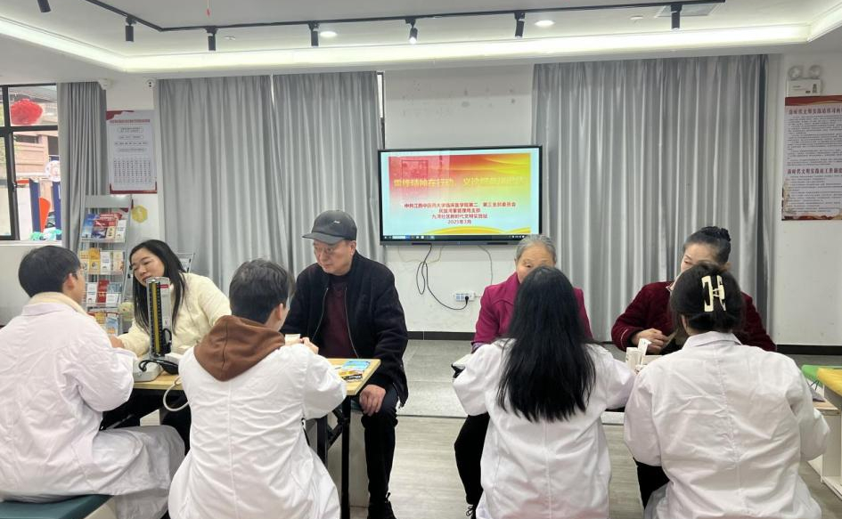 为弘扬雷锋精神和中医文化,给社区居民提供健康服务,3月14日,临床医学院学生第二党支部与学生第三党支部携手民盟湾里管理局党支部赴湾里九湾社区开展“雷锋精神在行动,义诊服务送温情”志愿服务活动。