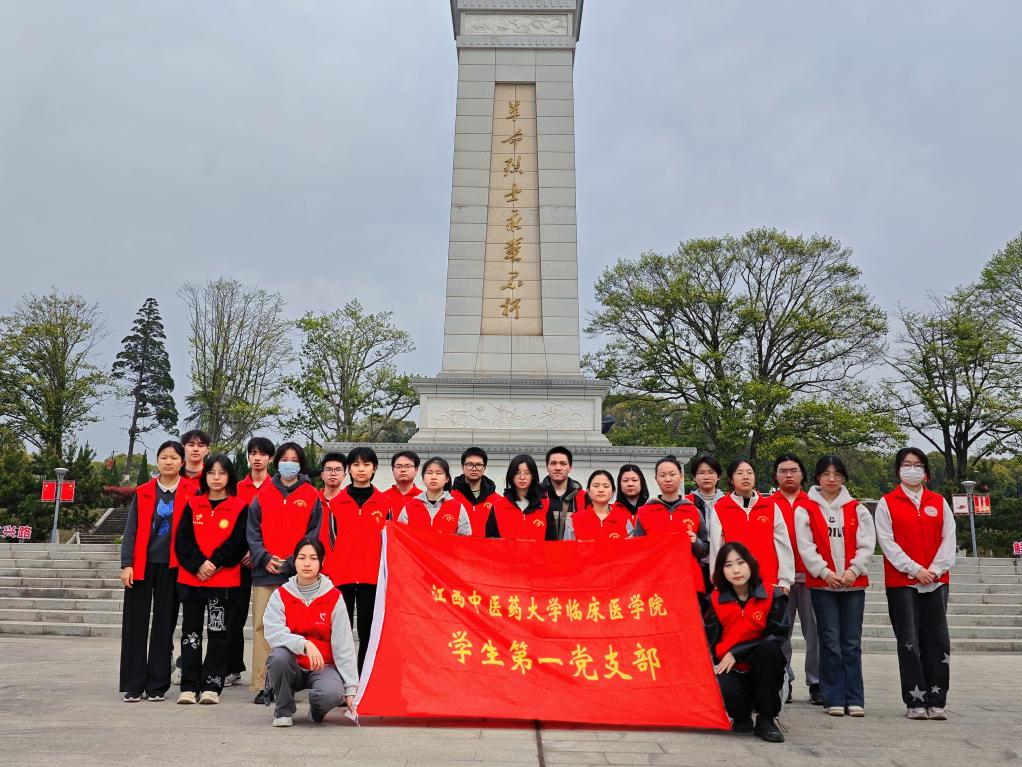 4月4日,正值清明节,南昌市革命烈士陵园内松柏凝翠,一片庄严肃穆的景象。在这个特殊的日子里,怀着对革命先烈的崇高敬意,临床医学院学生第一党支部联合2023级中医1团支部、2023级中医2团支部,齐聚于此,开展“赓续红色血脉·砥砺医者初心”祭扫活动。