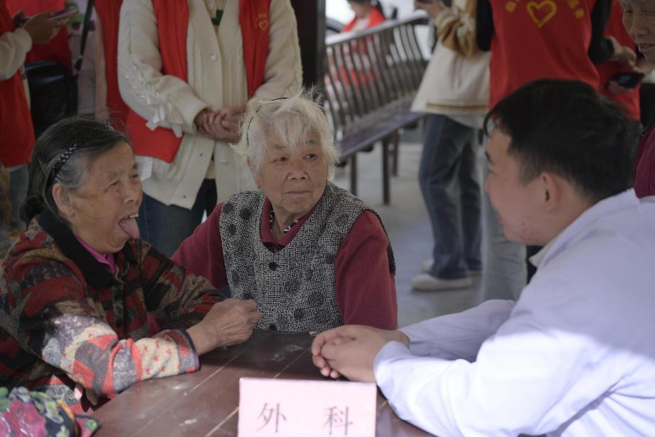 在义诊区域,志愿者们充分发挥专业技能,为居民们开展量血压、艾灸、推拿等服务。同时,研究生院的志愿者们耐心解答居民有关健康的问题和疑惑。