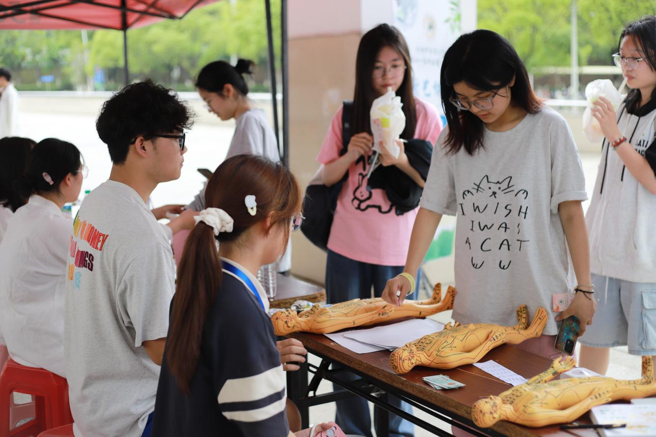 学校领导一行来到现场,向工作人员细致询问了活动筹备情况。本次中医药文化节以“四象五德”为核心,将游园会分为“苍龙”“朱雀”“白虎”“玄武”和“黄麟”五个园区,每一个区域按照不同性质分为四类对应四象。游园会中,养生大问答、中医飞花令、刮痧萝卜蹲、悬壶射虎等游戏项目广受师生的欢迎。活动现场人声鼎沸,各个游戏摊位都围满了游玩的师生,同学们驻足观赏表演,积极参与游戏,共同享受此次中医药文化盛会。