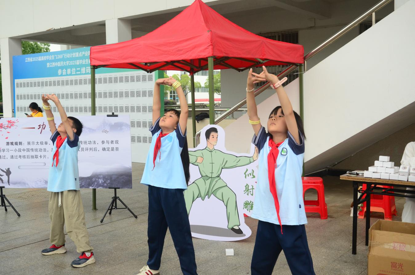 “今天玩得开不开心呀?”“开心!”小朋友们的脸上洋溢着灿烂的笑容,热烈的欢呼声回荡在校园上空。南昌市胡家小学中草药社团的师生作为特邀嘉宾参与了本次开幕式,学生志愿者们带领他们参观学校中医药文化馆,辨识神农园草药,参与展区现场活动。